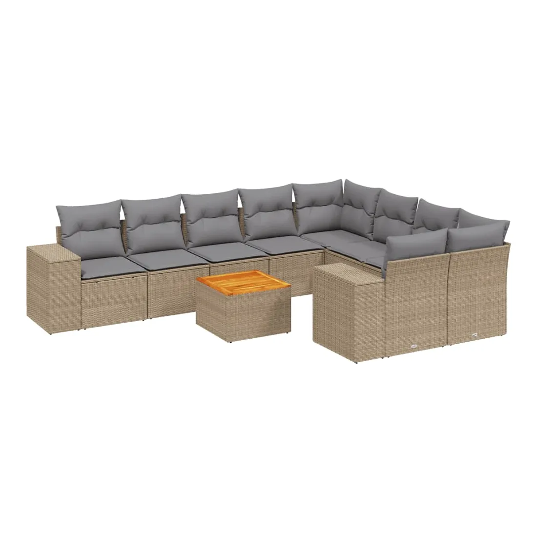 Salon de jardin avec coussins 10 pcs beige résine tressée