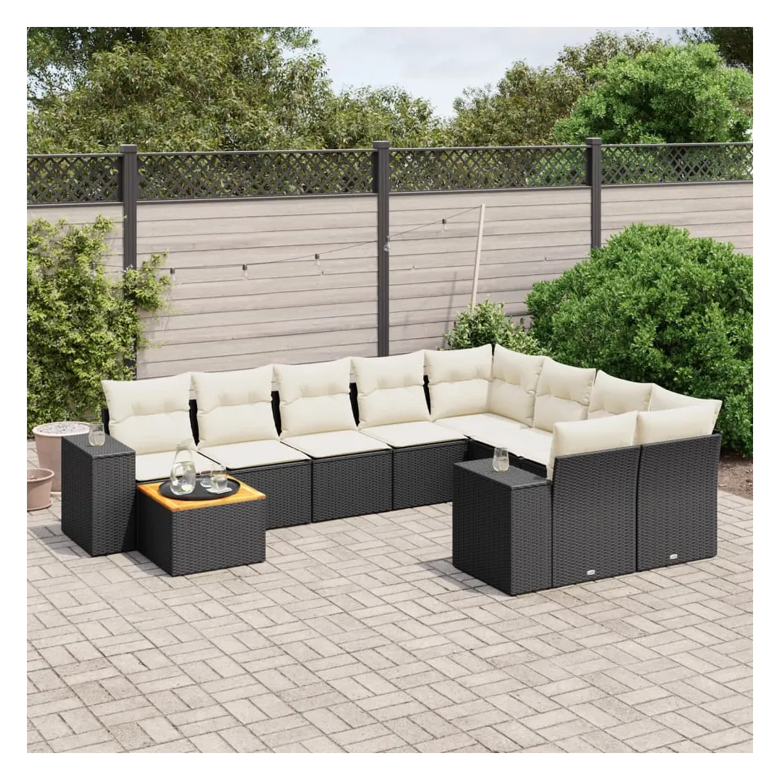 Salon de jardin 10 pcs avec coussins noir résine tressée