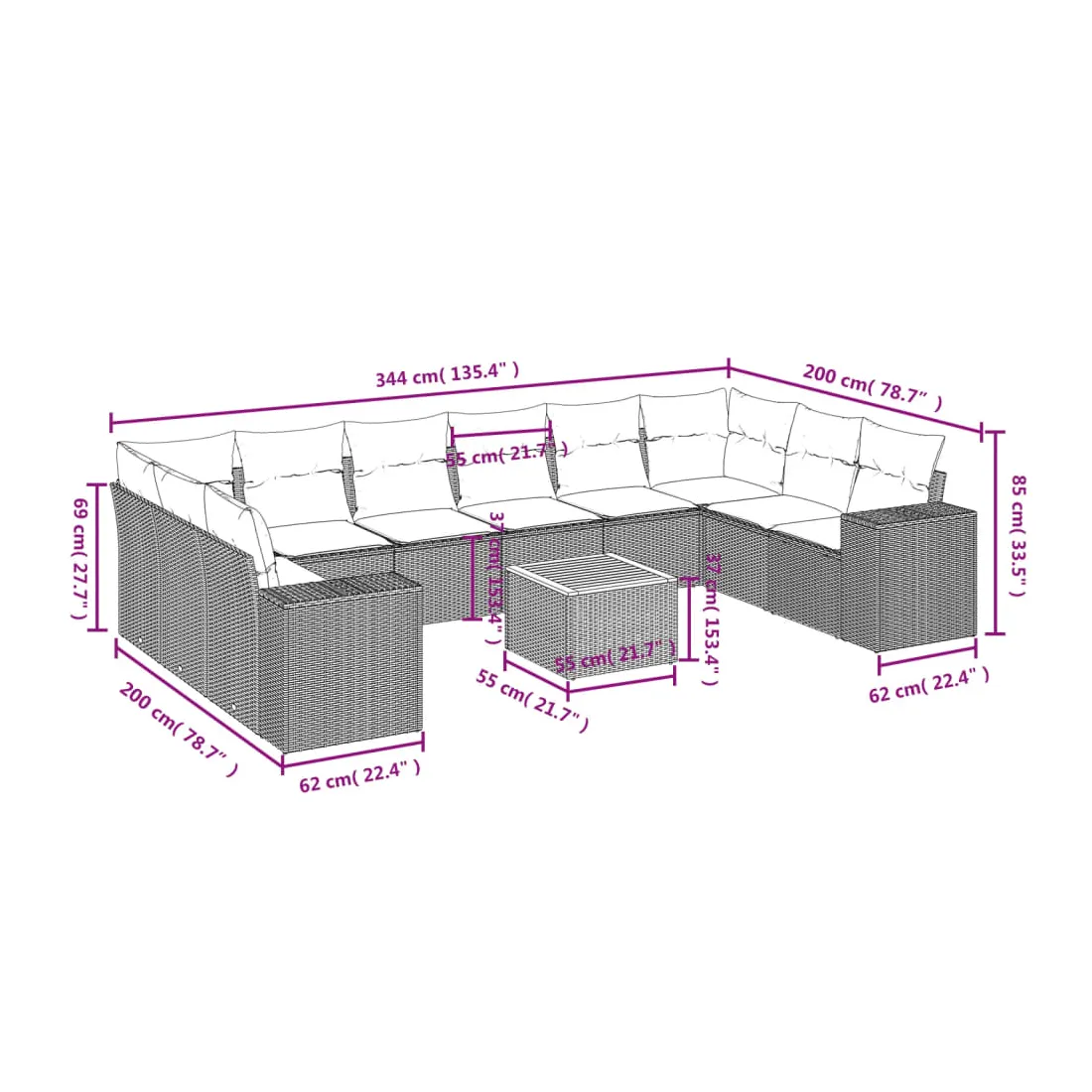 Salon de jardin 11 pcs avec coussins beige résine tressée