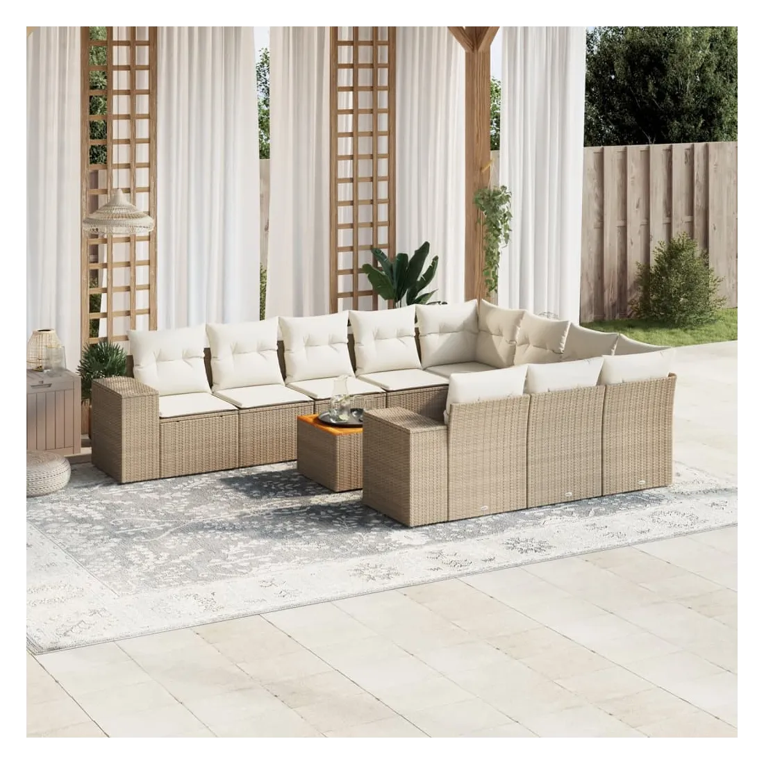 Salon de jardin 11 pcs avec coussins beige résine tressée