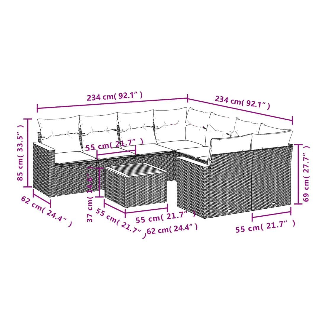 Cet ensemble de canapés de jardin est le complément parfait de votre arrière-cour, terrasse ou patio, offrant un espace confortable et accueillant pour discuter avec la famille et les amis ou simplement se détendre et profiter de l'extérieur. Matériau durable : la résine tressée, également connue sous le nom de poly rotin, est un matériau synthétique solide et nécessitant peu d'entretien qui ressemble au rotin naturel. Il est léger, facile à nettoyer et couramment utilisé pour les meubles d'extérieur en raison de sa durabilité et de ses propriétés de résistance aux intempéries.Fonction de rangement avec sac résistant à l'eau : le mobilier de jardin dispose d'un espace de rangement sous l'assise, complété par un sac résistant à l'eau pour ranger coussins, jouets et autres objets. Le sac intérieur peut être solidement fixé au mobilier d'extérieur grâce à des attaches auto-agrippantes pour plus de stabilité.Dessus stable et facile à nettoyer : cette table de jardin a un dessus en bois d'acacia robuste, durable et facile à nettoyer avec un chiffon humide.Housse amovible et lavable : ces coussins de siège sont dotés de housses amovibles pour un lavage et un entretien faciles.Conception modulaire : cet ensemble de meubles d'extérieur a une conception modulaire, ce qui le rend complètement flexible et facile à déplacer, afin que vous puissiez créer un agencement de meubles d'extérieur personnalisé. Bon à savoir :Pour que vos meubles d'extérieur restent beaux, nous vous recommandons de les protéger avec une housse imperméable.
