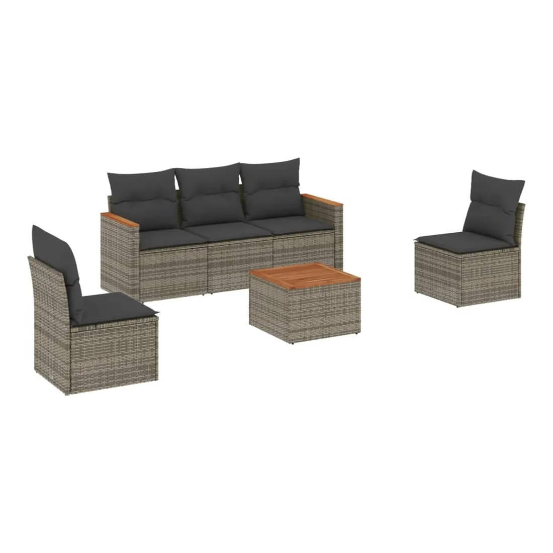 Cet ensemble de canapés de jardin est le complément parfait de votre arrière-cour, terrasse ou patio, offrant un espace confortable et accueillant pour discuter avec la famille et les amis ou simplement se détendre et profiter de l'extérieur. Matériau durable : la résine tressée, également connue sous le nom de poly rotin, est un matériau synthétique solide et nécessitant peu d'entretien qui ressemble au rotin naturel. Il est léger, facile à nettoyer et couramment utilisé pour les meubles d'extérieur en raison de sa durabilité et de ses propriétés de résistance aux intempéries.Fonction de rangement avec sac résistant à l'eau : le mobilier de jardin dispose d'un espace de rangement sous l'assise, complété par un sac résistant à l'eau pour ranger coussins, jouets et autres objets. Le sac intérieur peut être solidement fixé au mobilier d'extérieur grâce à des attaches auto-agrippantes pour plus de stabilité.Dessus stable et facile à nettoyer : cette table de jardin a un dessus en bois d'acacia robuste, durable et facile à nettoyer avec un chiffon humide.Housse amovible et lavable : ces coussins de siège sont dotés de housses amovibles pour un lavage et un entretien faciles.Conception modulaire : cet ensemble de meubles d'extérieur a une conception modulaire, ce qui le rend complètement flexible et facile à déplacer, afin que vous puissiez créer un agencement de meubles d'extérieur personnalisé. Bon à savoir :Pour que vos meubles d'extérieur restent beaux, nous vous recommandons de les protéger avec une housse imperméable.