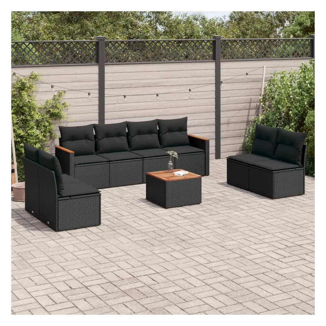 Cet ensemble de canapés de jardin est le complément parfait de votre arrière-cour, terrasse ou patio, offrant un espace confortable et accueillant pour discuter avec la famille et les amis ou simplement se détendre et profiter de l'extérieur. Matériau durable : la résine tressée, également connue sous le nom de poly rotin, est un matériau synthétique solide et nécessitant peu d'entretien qui ressemble au rotin naturel. Il est léger, facile à nettoyer et couramment utilisé pour les meubles d'extérieur en raison de sa durabilité et de ses propriétés de résistance aux intempéries.Fonction de rangement avec sac résistant à l'eau : le mobilier de jardin dispose d'un espace de rangement sous l'assise, complété par un sac résistant à l'eau pour ranger coussins, jouets et autres objets. Le sac intérieur peut être solidement fixé au mobilier d'extérieur grâce à des attaches auto-agrippantes pour plus de stabilité.Dessus stable et facile à nettoyer : cette table de jardin a un dessus en bois d'acacia robuste, durable et facile à nettoyer avec un chiffon humide.Housse amovible et lavable : ces coussins de siège sont dotés de housses amovibles pour un lavage et un entretien faciles.Conception modulaire : cet ensemble de meubles d'extérieur a une conception modulaire, ce qui le rend complètement flexible et facile à déplacer, afin que vous puissiez créer un agencement de meubles d'extérieur personnalisé. Bon à savoir :Pour que vos meubles d'extérieur restent beaux, nous vous recommandons de les protéger avec une housse imperméable.