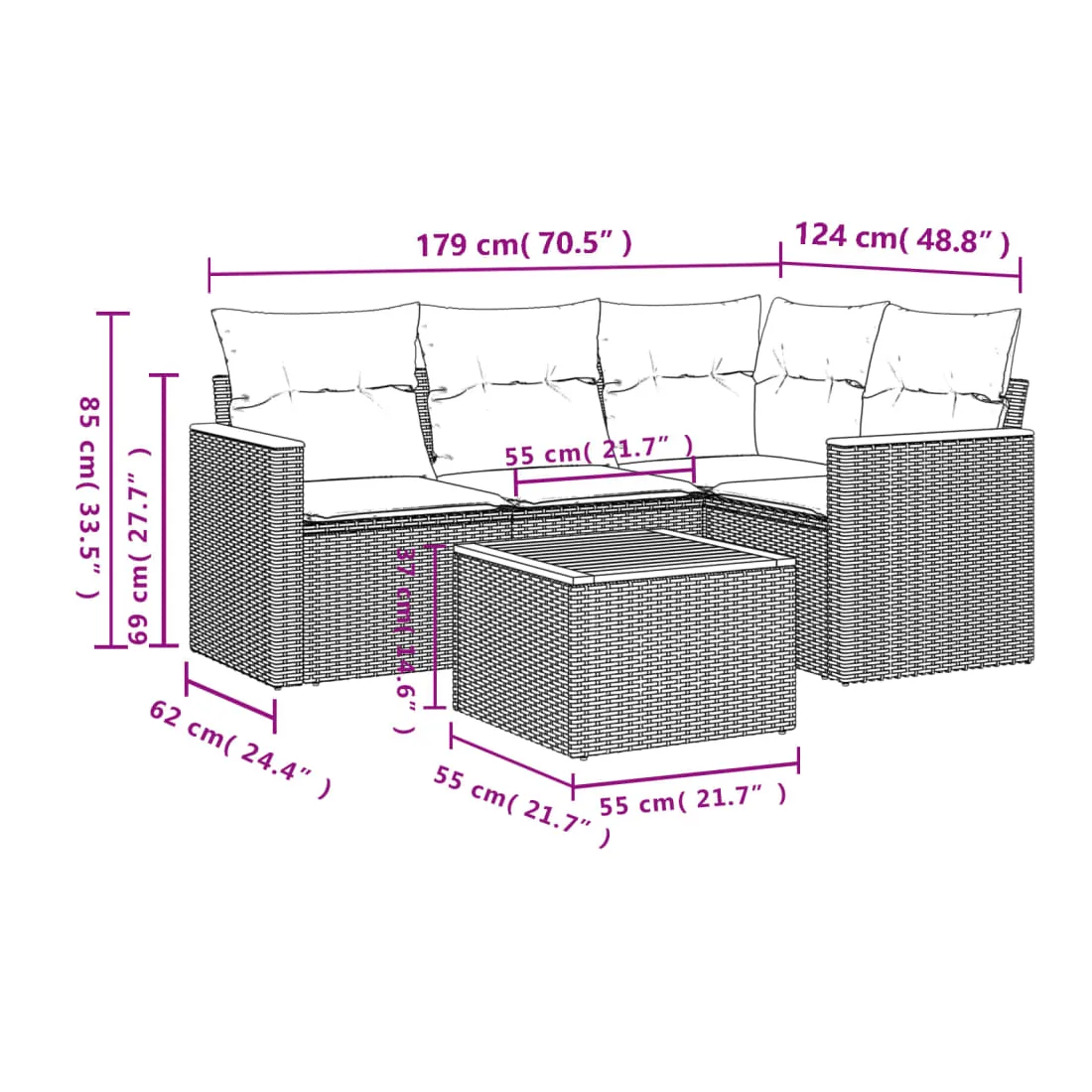 - Dimensions : 55 x 55 x 37 cm (L x l x H)