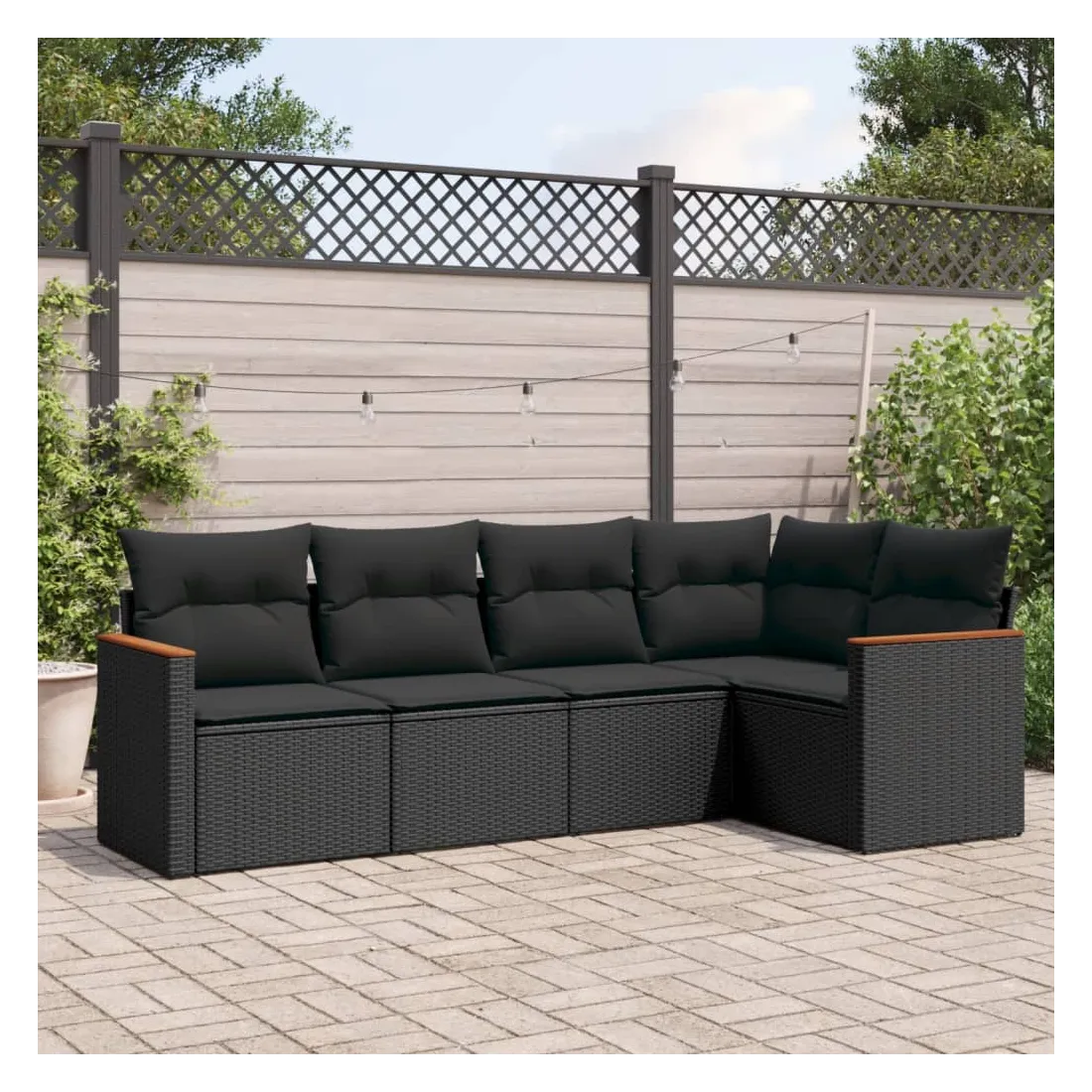 Salon de jardin 5 pcs avec coussins noir résine tressée