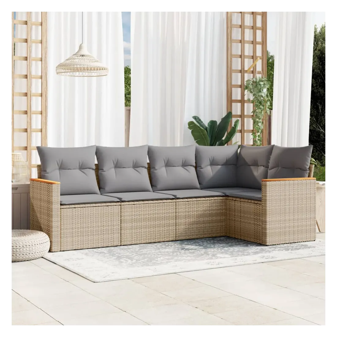 Salon de jardin avec coussins 5 pcs beige résine tressée