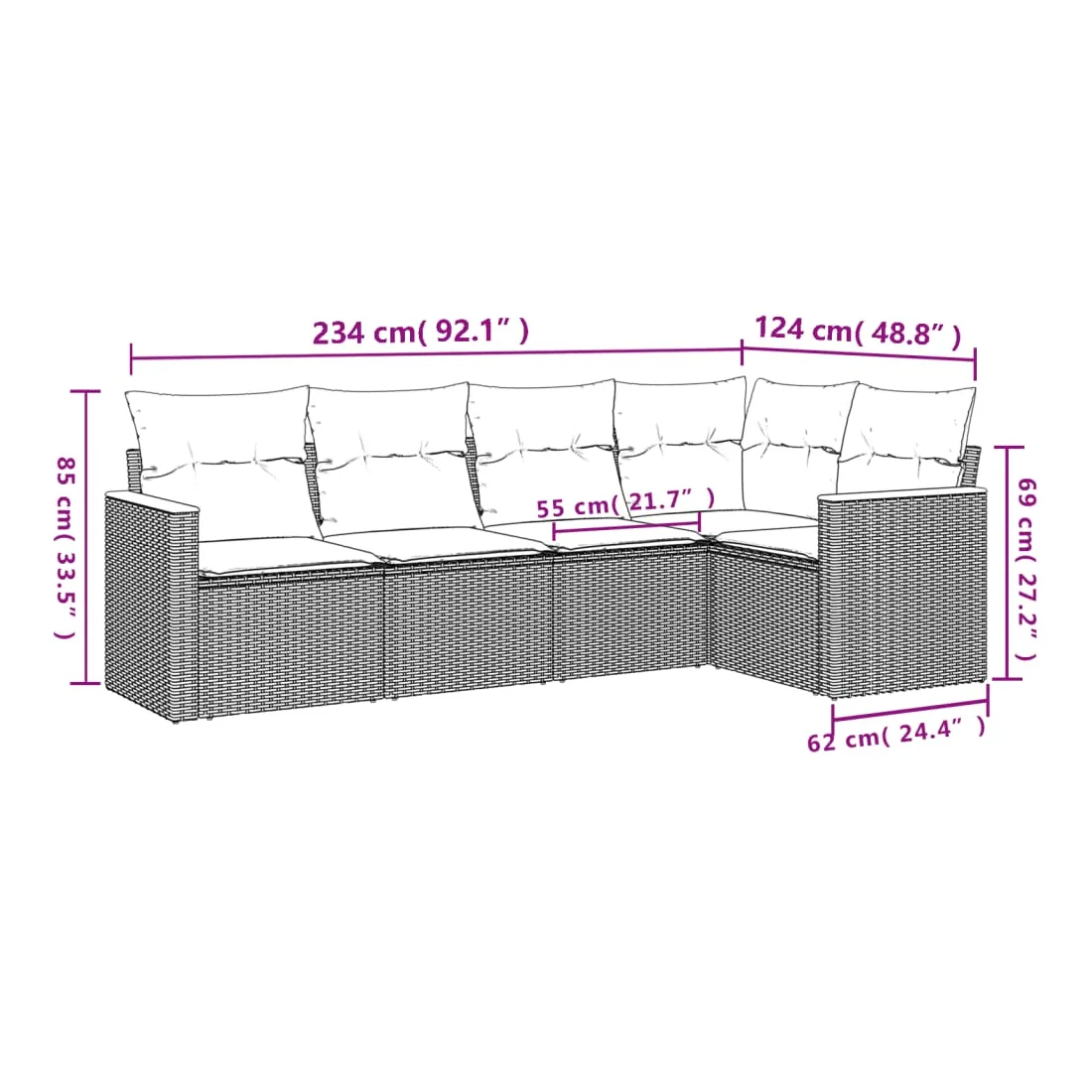 • Dimensions du coussin de dossier : 55 x 45 x 13 cm (L x l x é)