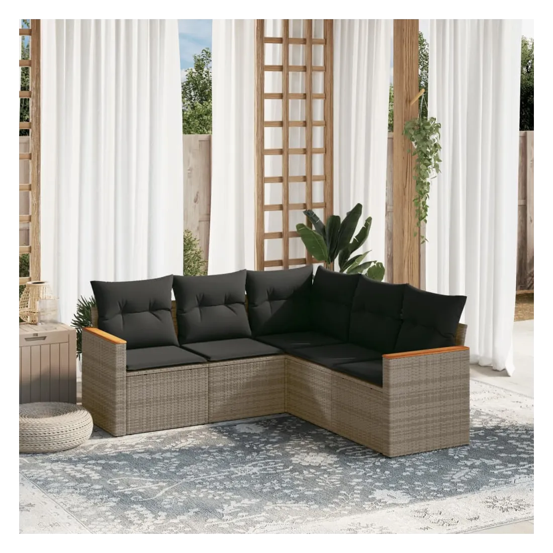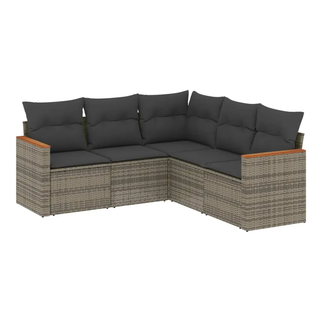 Salon de jardin 5 pcs avec coussins gris résine tressée