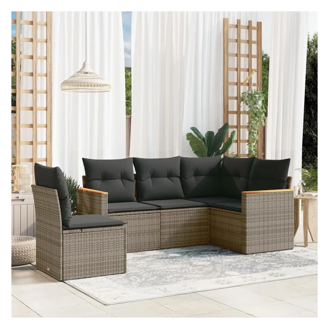 Salon de jardin 5 pcs avec coussins gris résine tressée