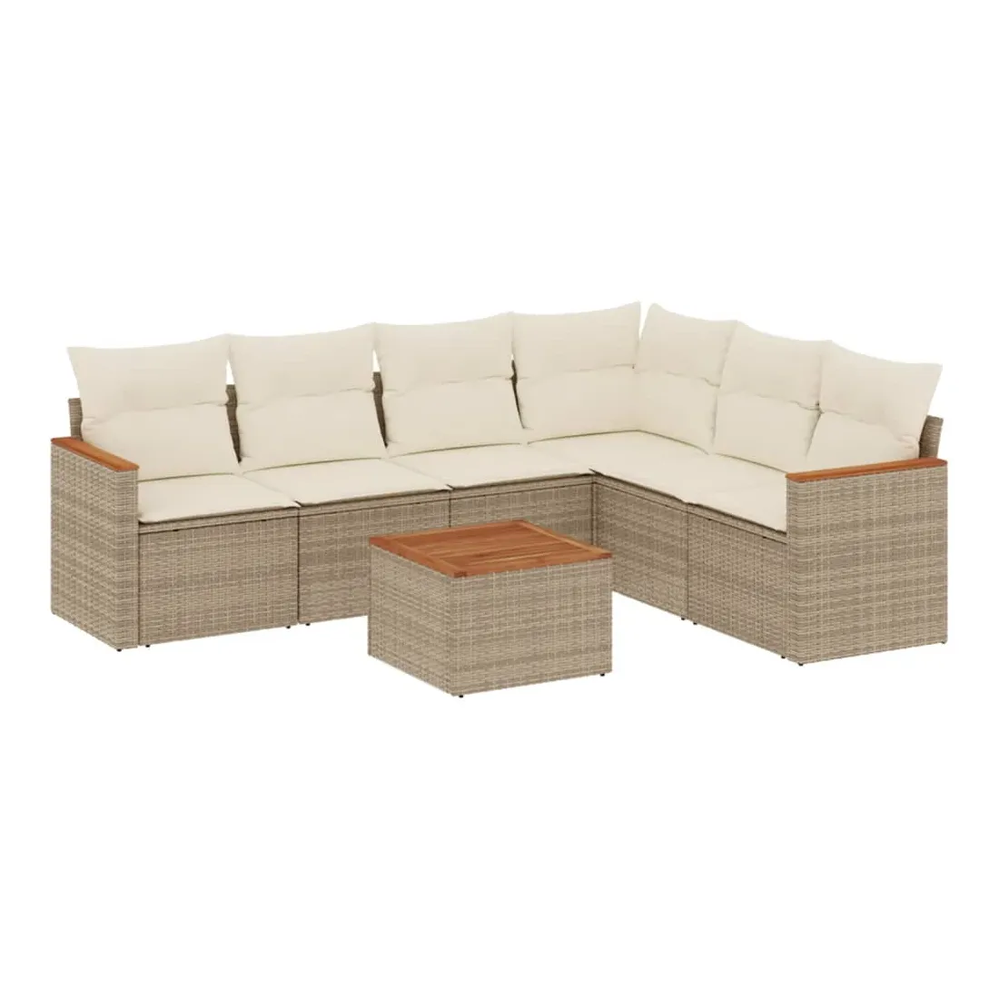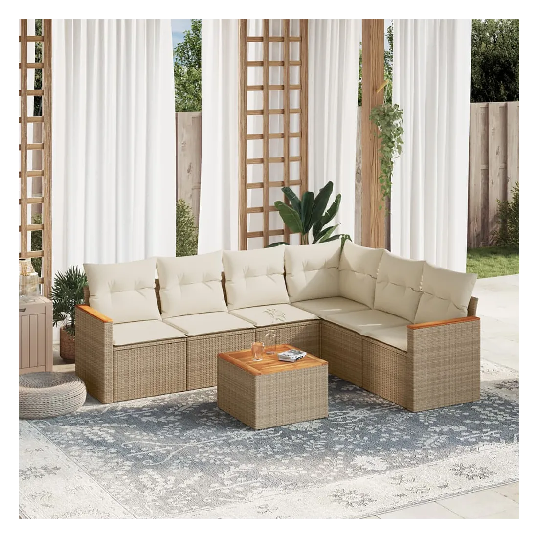 Salon de jardin avec coussins 7 pcs beige résine tressée