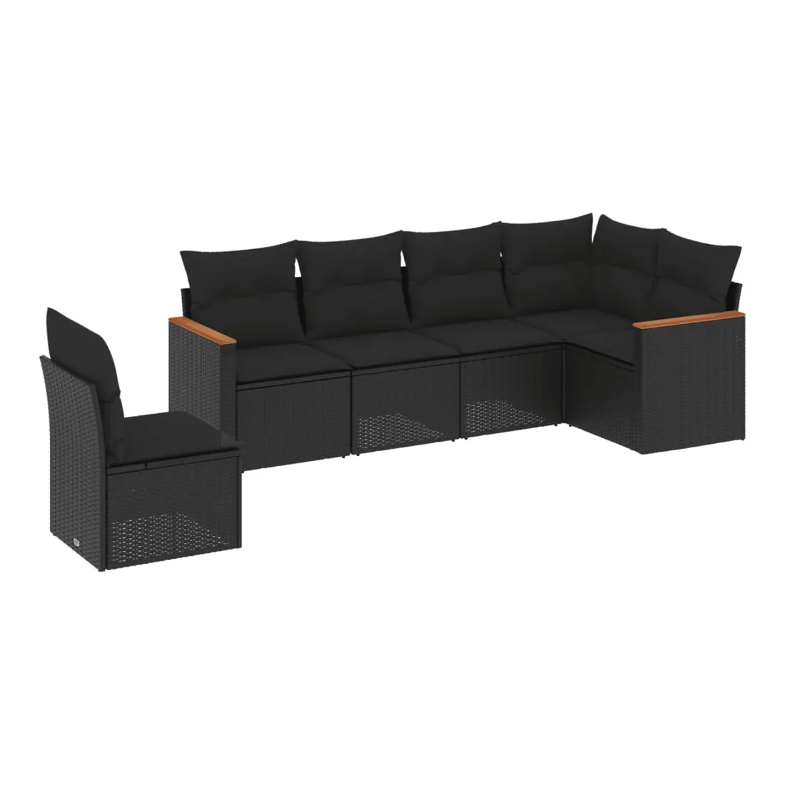 Salon de jardin 6 pcs avec coussins noir résine tressée