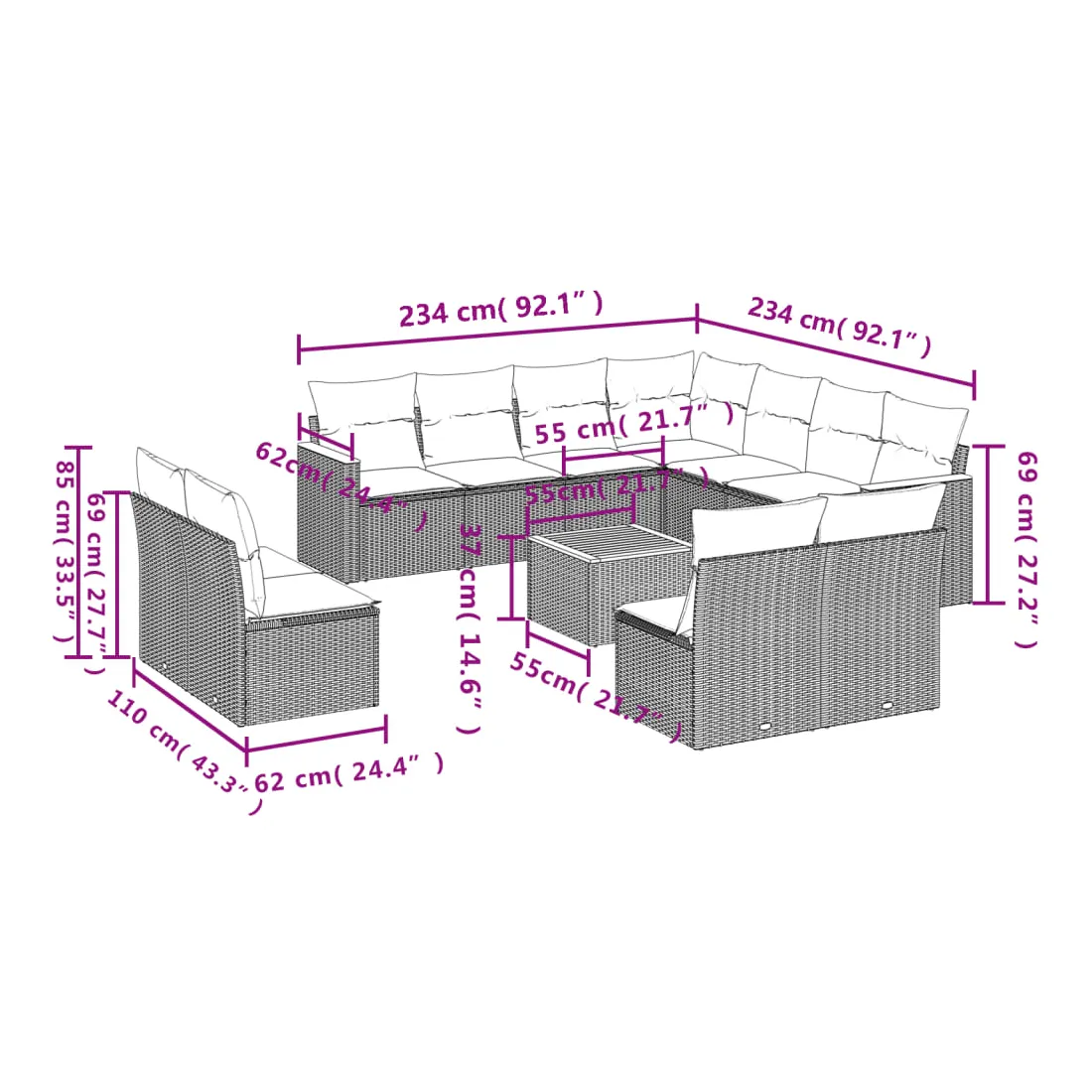 - Dimensions du coussin de dossier : 55 x 45 x 13 cm (L x l x é)