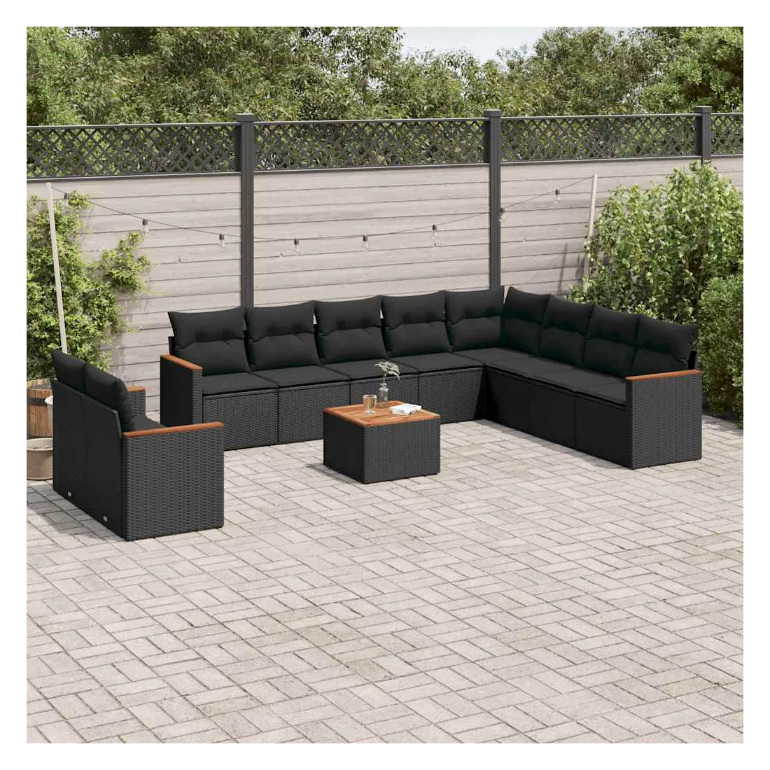Cet ensemble de canapés de jardin est le complément parfait de votre arrière-cour, terrasse ou patio, offrant un espace confortable et accueillant pour discuter avec la famille et les amis ou simplement se détendre et profiter de l'extérieur. Matériau durable : la résine tressée, également connue sous le nom de poly rotin, est un matériau synthétique solide et nécessitant peu d'entretien qui ressemble au rotin naturel. Il est léger, facile à nettoyer et couramment utilisé pour les meubles d'extérieur en raison de sa durabilité et de ses propriétés de résistance aux intempéries.Fonction de rangement avec sac résistant à l'eau : le mobilier de jardin dispose d'un espace de rangement sous l'assise, complété par un sac résistant à l'eau pour ranger coussins, jouets et autres objets. Le sac intérieur peut être solidement fixé au mobilier d'extérieur grâce à des attaches auto-agrippantes pour plus de stabilité.Dessus stable et facile à nettoyer : cette table de jardin a un dessus en bois d'acacia robuste, durable et facile à nettoyer avec un chiffon humide.Housse amovible et lavable : ces coussins de siège sont dotés de housses amovibles pour un lavage et un entretien faciles.Conception modulaire : cet ensemble de meubles d'extérieur a une conception modulaire, ce qui le rend complètement flexible et facile à déplacer, afin que vous puissiez créer un agencement de meubles d'extérieur personnalisé. Bon à savoir :Pour que vos meubles d'extérieur restent beaux, nous vous recommandons de les protéger avec une housse imperméable.