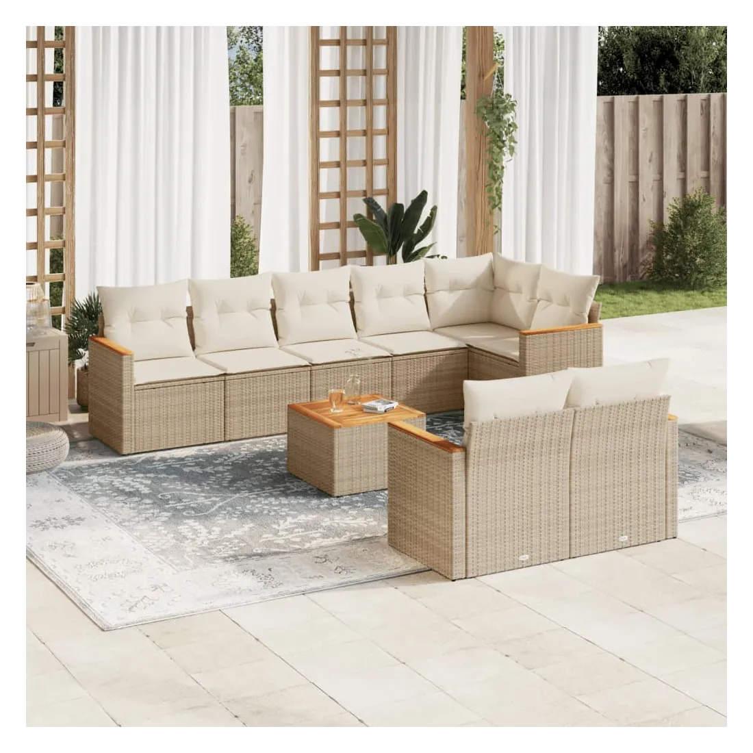 Cet ensemble de canapés de jardin est le complément parfait de votre arrière-cour, terrasse ou patio, offrant un espace confortable et accueillant pour discuter avec la famille et les amis ou simplement se détendre et profiter de l'extérieur. Matériau durable : la résine tressée, également connue sous le nom de poly rotin, est un matériau synthétique solide et nécessitant peu d'entretien qui ressemble au rotin naturel. Il est léger, facile à nettoyer et couramment utilisé pour les meubles d'extérieur en raison de sa durabilité et de ses propriétés de résistance aux intempéries.Fonction de rangement avec sac résistant à l'eau : le mobilier de jardin dispose d'un espace de rangement sous l'assise, complété par un sac résistant à l'eau pour ranger coussins, jouets et autres objets. Le sac intérieur peut être solidement fixé au mobilier d'extérieur grâce à des attaches auto-agrippantes pour plus de stabilité.Dessus stable et facile à nettoyer : cette table de jardin a un dessus en bois d'acacia robuste, durable et facile à nettoyer avec un chiffon humide.Housse amovible et lavable : ces coussins de siège sont dotés de housses amovibles pour un lavage et un entretien faciles.Conception modulaire : cet ensemble de meubles d'extérieur a une conception modulaire, ce qui le rend complètement flexible et facile à déplacer, afin que vous puissiez créer un agencement de meubles d'extérieur personnalisé. Bon à savoir :Pour que vos meubles d'extérieur restent beaux, nous vous recommandons de les protéger avec une housse imperméable.