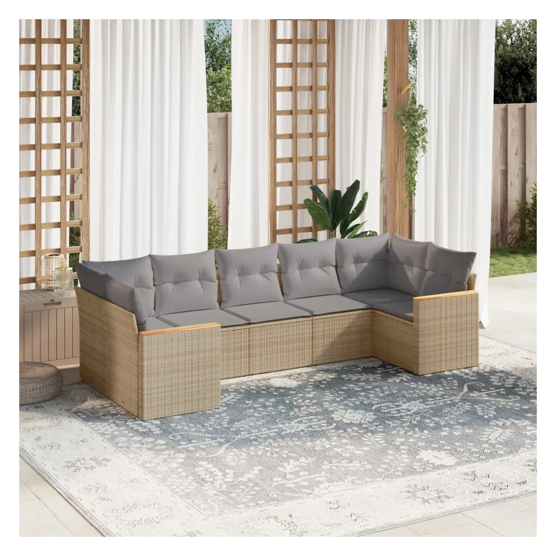 Cet ensemble de canapés de jardin est le complément parfait de votre arrière-cour, terrasse ou patio, offrant un espace confortable et accueillant pour discuter avec la famille et les amis ou simplement se détendre et profiter de l'extérieur. Matériau durable : la résine tressée, également connue sous le nom de poly rotin, est un matériau synthétique solide et nécessitant peu d'entretien qui ressemble au rotin naturel. Il est léger, facile à nettoyer et couramment utilisé pour les meubles d'extérieur en raison de sa durabilité et de ses propriétés de résistance aux intempéries.Fonction de rangement avec sac résistant à l'eau : le mobilier de jardin dispose d'un espace de rangement sous l'assise, complété par un sac résistant à l'eau pour ranger coussins, jouets et autres objets. Le sac intérieur peut être solidement fixé au mobilier d'extérieur grâce à des attaches auto-agrippantes pour plus de stabilité.Housse amovible et lavable : ces coussins de siège sont dotés de housses amovibles pour un lavage et un entretien faciles.Conception modulaire : cet ensemble de meubles d'extérieur a une conception modulaire, ce qui le rend complètement flexible et facile à déplacer, afin que vous puissiez créer un agencement de meubles d'extérieur personnalisé. Bon à savoir :Pour que vos meubles d'extérieur restent beaux, nous vous recommandons de les protéger avec une housse imperméable.