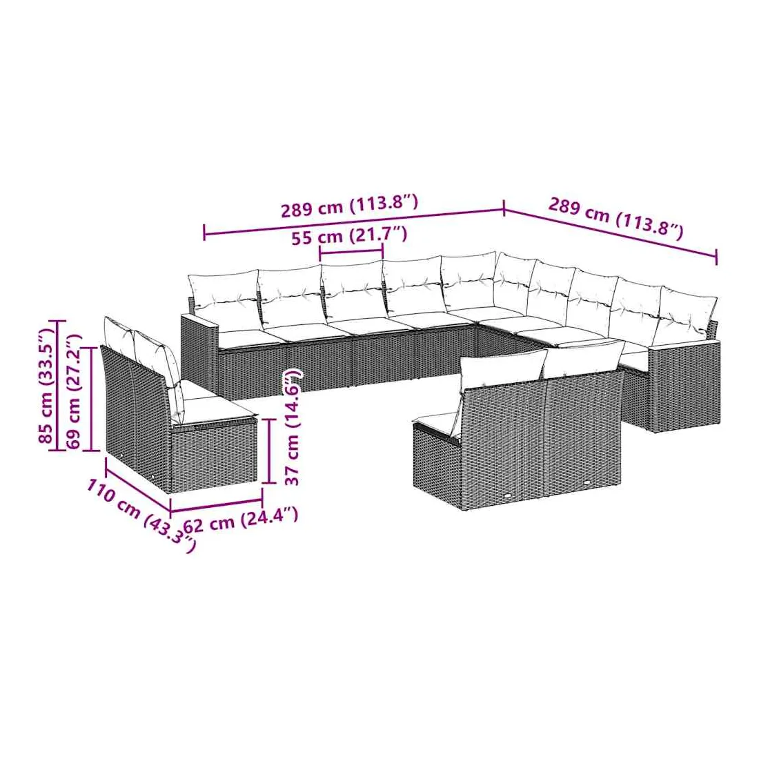- Dimensions du coussin de dossier : 55 x 45 x 13 cm (L x l x é)