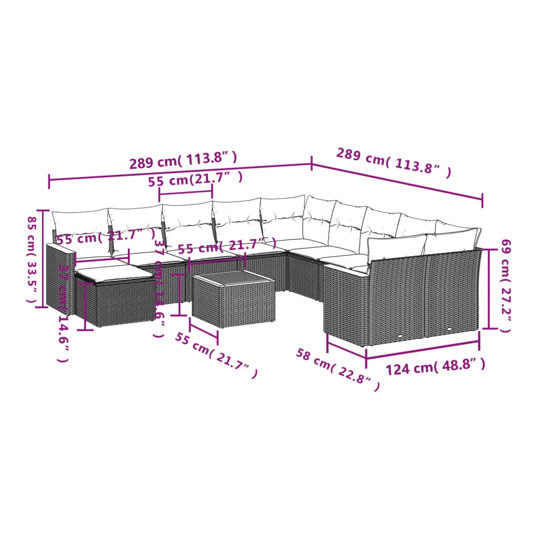 - Dimensions du coussin de dossier : 55 x 45 x 13 cm (L x l x é)