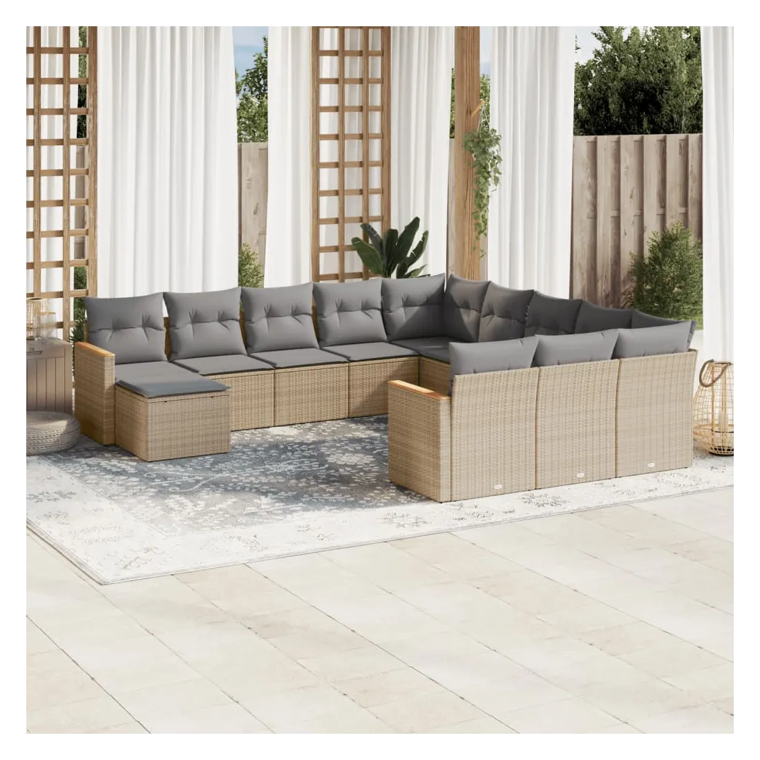 Cet ensemble de canapés de jardin est le complément parfait de votre arrière-cour, terrasse ou patio, offrant un espace confortable et accueillant pour discuter avec la famille et les amis ou simplement se détendre et profiter de l'extérieur. Matériau durable : la résine tressée, également connue sous le nom de poly rotin, est un matériau synthétique solide et nécessitant peu d'entretien qui ressemble au rotin naturel. Il est léger, facile à nettoyer et couramment utilisé pour les meubles d'extérieur en raison de sa durabilité et de ses propriétés de résistance aux intempéries.Fonction de rangement avec sac résistant à l'eau : le mobilier de jardin dispose d'un espace de rangement sous l'assise, complété par un sac résistant à l'eau pour ranger coussins, jouets et autres objets. Le sac intérieur peut être solidement fixé au mobilier d'extérieur grâce à des attaches auto-agrippantes pour plus de stabilité.Housse amovible et lavable : ces coussins de siège sont dotés de housses amovibles pour un lavage et un entretien faciles.Conception modulaire : cet ensemble de meubles d'extérieur a une conception modulaire, ce qui le rend complètement flexible et facile à déplacer, afin que vous puissiez créer un agencement de meubles d'extérieur personnalisé. Bon à savoir :Pour que vos meubles d'extérieur restent beaux, nous vous recommandons de les protéger avec une housse imperméable.