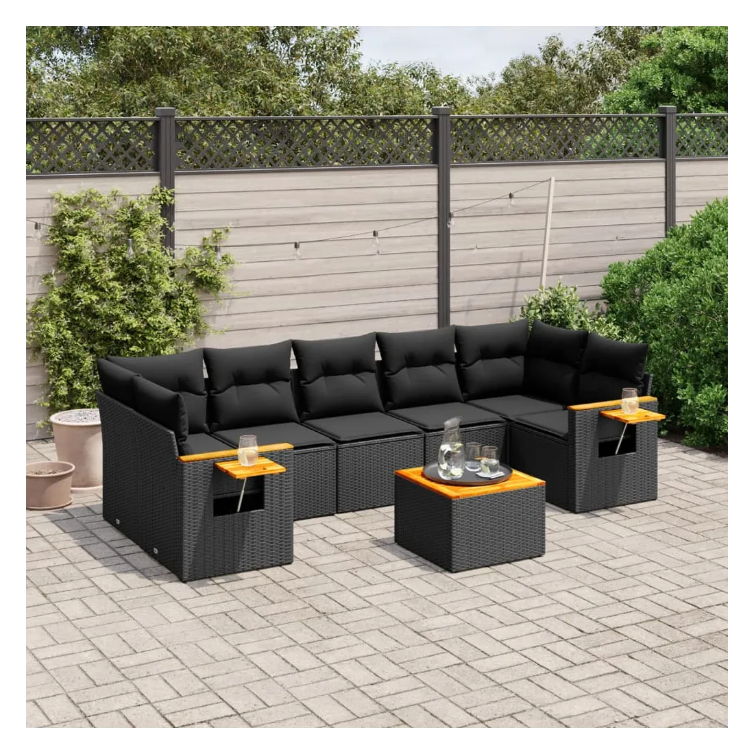 Cet ensemble de canapés de jardin est le complément parfait de votre arrière-cour, terrasse ou patio, offrant un espace confortable et accueillant pour discuter avec la famille et les amis ou simplement se détendre et profiter de l'extérieur. Matériau durable : la résine tressée, également connue sous le nom de poly rotin, est un matériau synthétique solide et nécessitant peu d'entretien qui ressemble au rotin naturel. Il est léger, facile à nettoyer et couramment utilisé pour les meubles d'extérieur en raison de sa durabilité et de ses propriétés de résistance aux intempéries.Fonction de rangement avec sac résistant à l'eau : le mobilier de jardin dispose d'un espace de rangement sous l'assise, complété par un sac résistant à l'eau pour ranger coussins, jouets et autres objets. Le sac intérieur peut être solidement fixé au mobilier d'extérieur grâce à des attaches auto-agrippantes pour plus de stabilité.Table d'appoint pratique : ce mobilier d'extérieur comprend une table d'appoint pliable avec un ressort à gaz sur les accoudoirs, offrant un endroit pratique pour garder vos essentiels à portée de main.Housse amovible et lavable : ces coussins de siège sont dotés de housses amovibles pour un lavage et un entretien faciles.Conception modulaire : cet ensemble de meubles d'extérieur a une conception modulaire, ce qui le rend complètement flexible et facile à déplacer, afin que vous puissiez créer un agencement de meubles d'extérieur personnalisé. Bon à savoir :Pour que vos meubles d'extérieur restent beaux, nous vous recommandons de les protéger avec une housse imperméable.