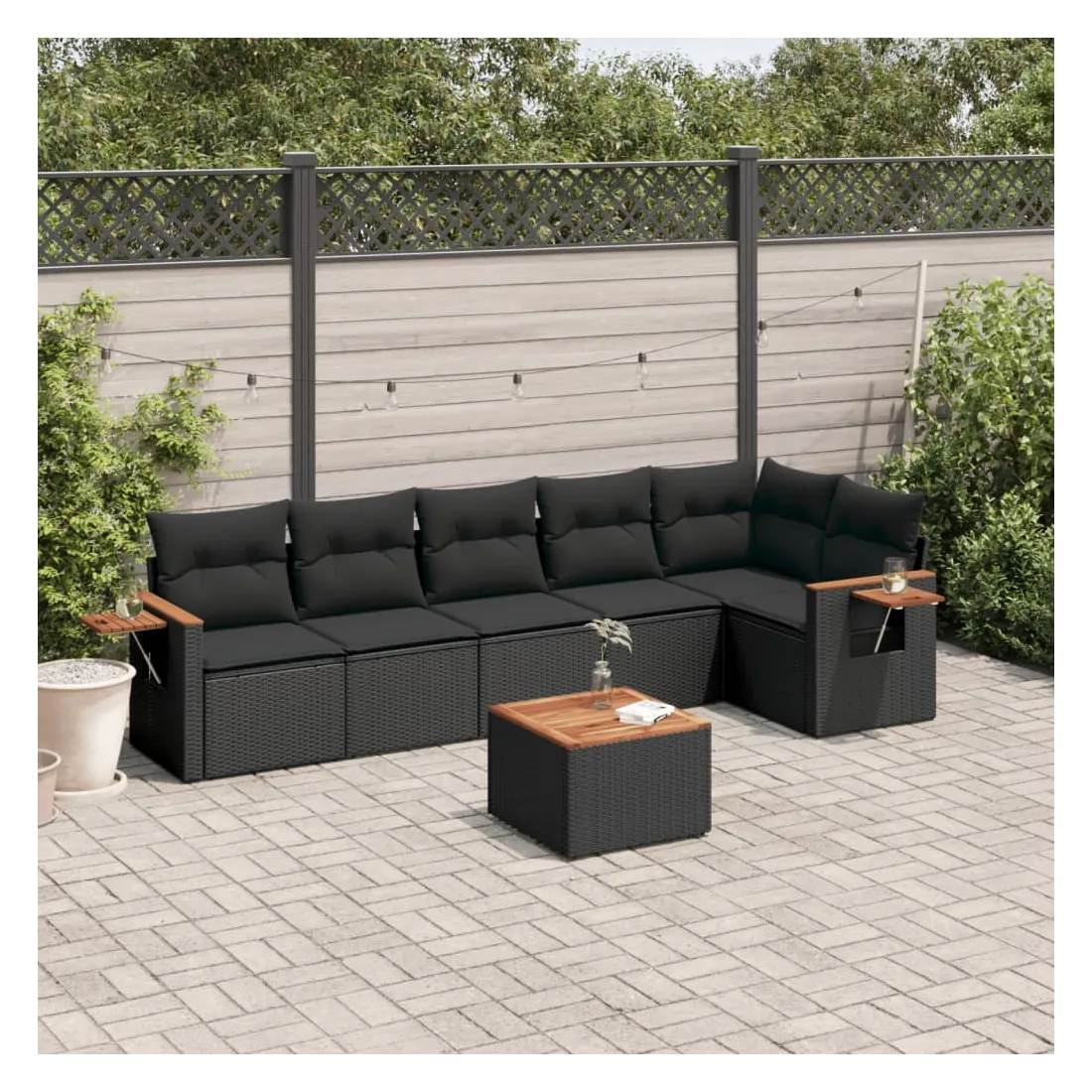 Salon de jardin 7 pcs avec coussins noir résine tressée