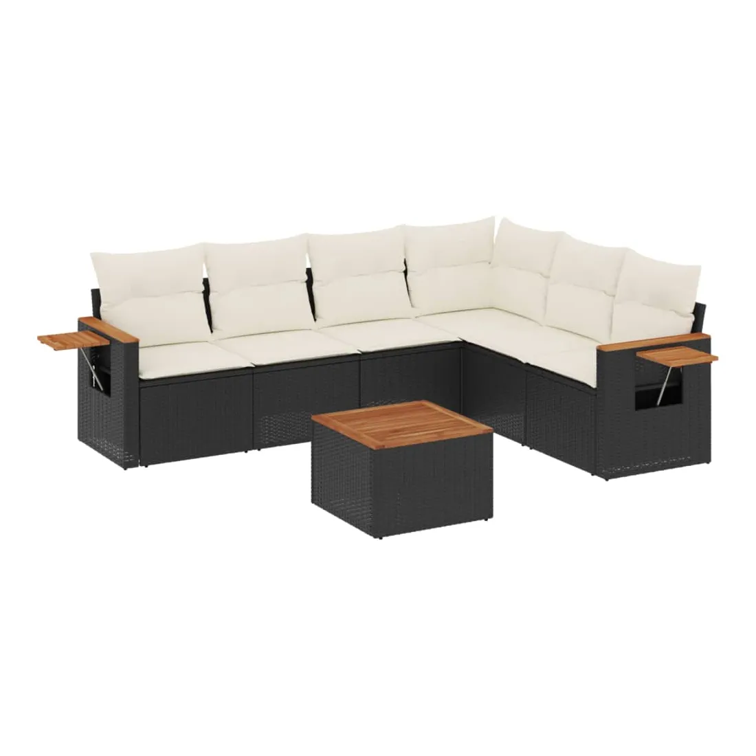 Salon de jardin 7 pcs avec coussins noir résine tressée