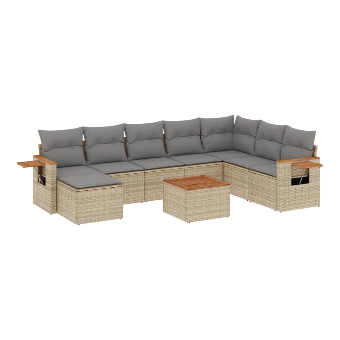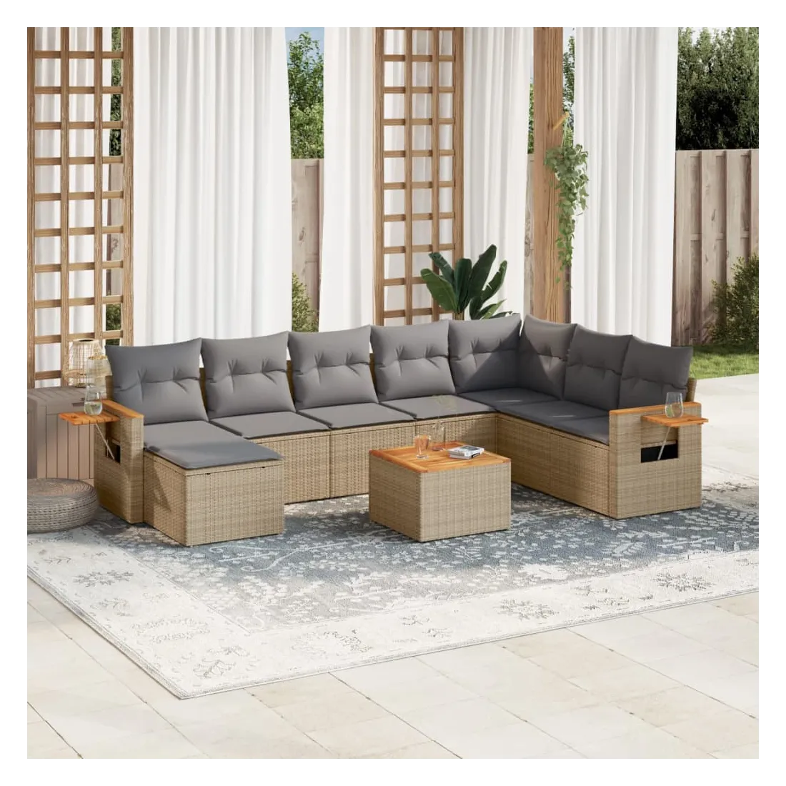 Cet ensemble de canapés de jardin est le complément parfait de votre arrière-cour, terrasse ou patio, offrant un espace confortable et accueillant pour discuter avec la famille et les amis ou simplement se détendre et profiter de l'extérieur. Matériau durable : la résine tressée, également connue sous le nom de poly rotin, est un matériau synthétique solide et nécessitant peu d'entretien qui ressemble au rotin naturel. Il est léger, facile à nettoyer et couramment utilisé pour les meubles d'extérieur en raison de sa durabilité et de ses propriétés de résistance aux intempéries.Fonction de rangement avec sac résistant à l'eau : le mobilier de jardin dispose d'un espace de rangement sous l'assise, complété par un sac résistant à l'eau pour ranger coussins, jouets et autres objets. Le sac intérieur peut être solidement fixé au mobilier d'extérieur grâce à des attaches auto-agrippantes pour plus de stabilité.Table d'appoint pratique : ce mobilier d'extérieur comprend une table d'appoint pliable avec un ressort à gaz sur les accoudoirs, offrant un endroit pratique pour garder vos essentiels à portée de main.Housse amovible et lavable : ces coussins de siège sont dotés de housses amovibles pour un lavage et un entretien faciles.Conception modulaire : cet ensemble de meubles d'extérieur a une conception modulaire, ce qui le rend complètement flexible et facile à déplacer, afin que vous puissiez créer un agencement de meubles d'extérieur personnalisé. Bon à savoir :Pour que vos meubles d'extérieur restent beaux, nous vous recommandons de les protéger avec une housse imperméable.