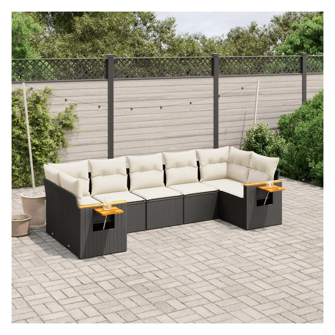 Cet ensemble de canapés de jardin est le complément parfait de votre arrière-cour, terrasse ou patio, offrant un espace confortable et accueillant pour discuter avec la famille et les amis ou simplement se détendre et profiter de l'extérieur. Matériau durable : la résine tressée, également connue sous le nom de poly rotin, est un matériau synthétique solide et nécessitant peu d'entretien qui ressemble au rotin naturel. Il est léger, facile à nettoyer et couramment utilisé pour les meubles d'extérieur en raison de sa durabilité et de ses propriétés de résistance aux intempéries.Fonction de rangement avec sac résistant à l'eau : le mobilier de jardin dispose d'un espace de rangement sous l'assise, complété par un sac résistant à l'eau pour ranger coussins, jouets et autres objets. Le sac intérieur peut être solidement fixé au mobilier d'extérieur grâce à des attaches auto-agrippantes pour plus de stabilité.Table d'appoint pratique : ce mobilier d'extérieur comprend une table d'appoint pliable avec un ressort à gaz sur les accoudoirs, offrant un endroit pratique pour garder vos essentiels à portée de main.Housse amovible et lavable : ces coussins de siège sont dotés de housses amovibles pour un lavage et un entretien faciles.Conception modulaire : cet ensemble de meubles d'extérieur a une conception modulaire, ce qui le rend complètement flexible et facile à déplacer, afin que vous puissiez créer un agencement de meubles d'extérieur personnalisé. Bon à savoir :Pour que vos meubles d'extérieur restent beaux, nous vous recommandons de les protéger avec une housse imperméable.