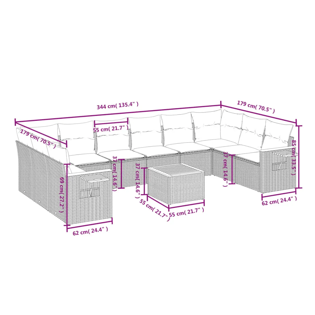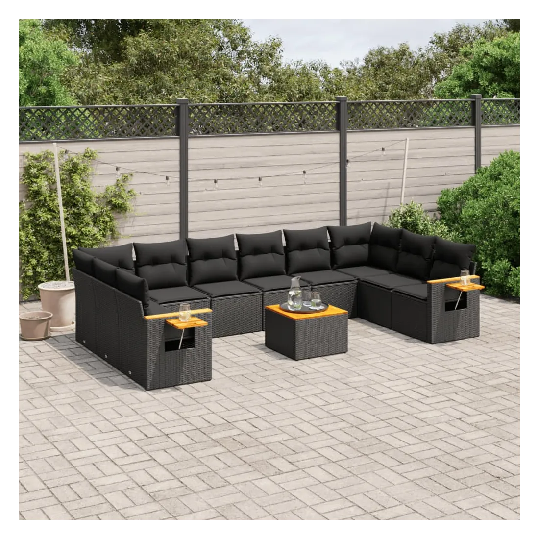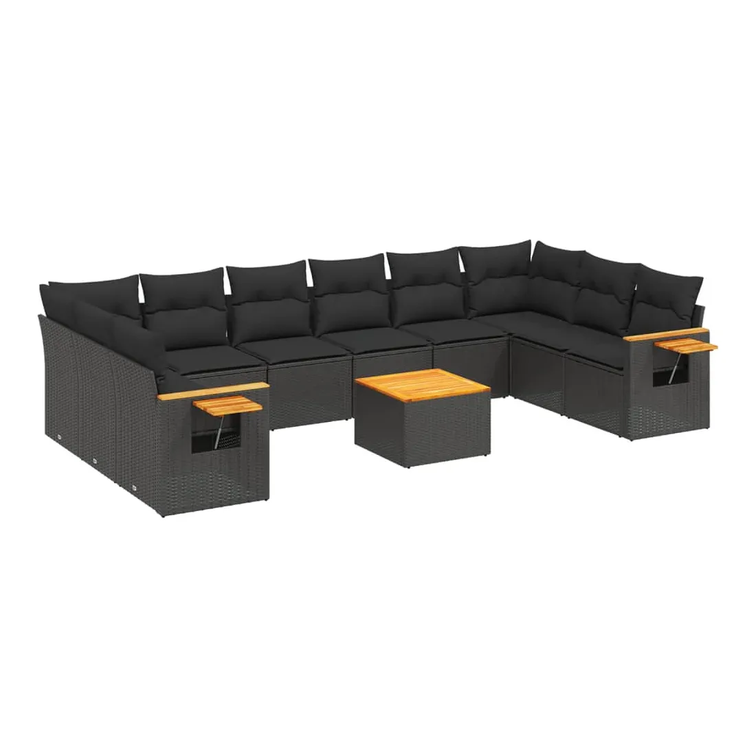 Salon de jardin 11 pcs avec coussins noir résine tressée