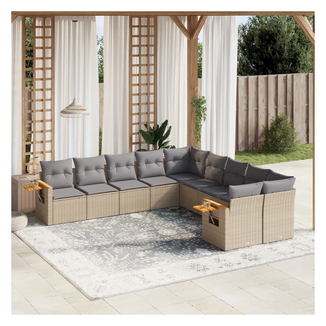 Cet ensemble de canapés de jardin est le complément parfait de votre arrière-cour, terrasse ou patio, offrant un espace confortable et accueillant pour discuter avec la famille et les amis ou simplement se détendre et profiter de l'extérieur. Matériau durable : la résine tressée, également connue sous le nom de poly rotin, est un matériau synthétique solide et nécessitant peu d'entretien qui ressemble au rotin naturel. Il est léger, facile à nettoyer et couramment utilisé pour les meubles d'extérieur en raison de sa durabilité et de ses propriétés de résistance aux intempéries.Fonction de rangement avec sac résistant à l'eau : le mobilier de jardin dispose d'un espace de rangement sous l'assise, complété par un sac résistant à l'eau pour ranger coussins, jouets et autres objets. Le sac intérieur peut être solidement fixé au mobilier d'extérieur grâce à des attaches auto-agrippantes pour plus de stabilité.Table d'appoint pratique : ce mobilier d'extérieur comprend une table d'appoint pliable avec un ressort à gaz sur les accoudoirs, offrant un endroit pratique pour garder vos essentiels à portée de main.Housse amovible et lavable : ces coussins de siège sont dotés de housses amovibles pour un lavage et un entretien faciles.Conception modulaire : cet ensemble de meubles d'extérieur a une conception modulaire, ce qui le rend complètement flexible et facile à déplacer, afin que vous puissiez créer un agencement de meubles d'extérieur personnalisé. Bon à savoir :Pour que vos meubles d'extérieur restent beaux, nous vous recommandons de les protéger avec une housse imperméable.