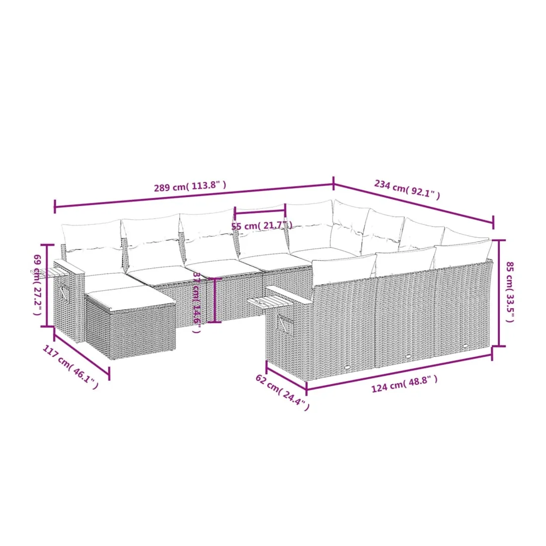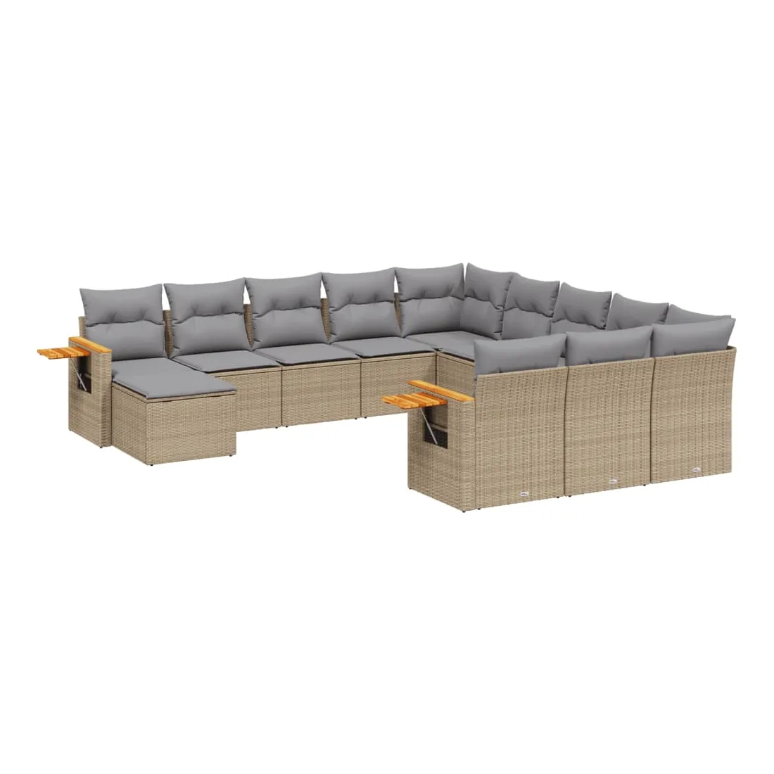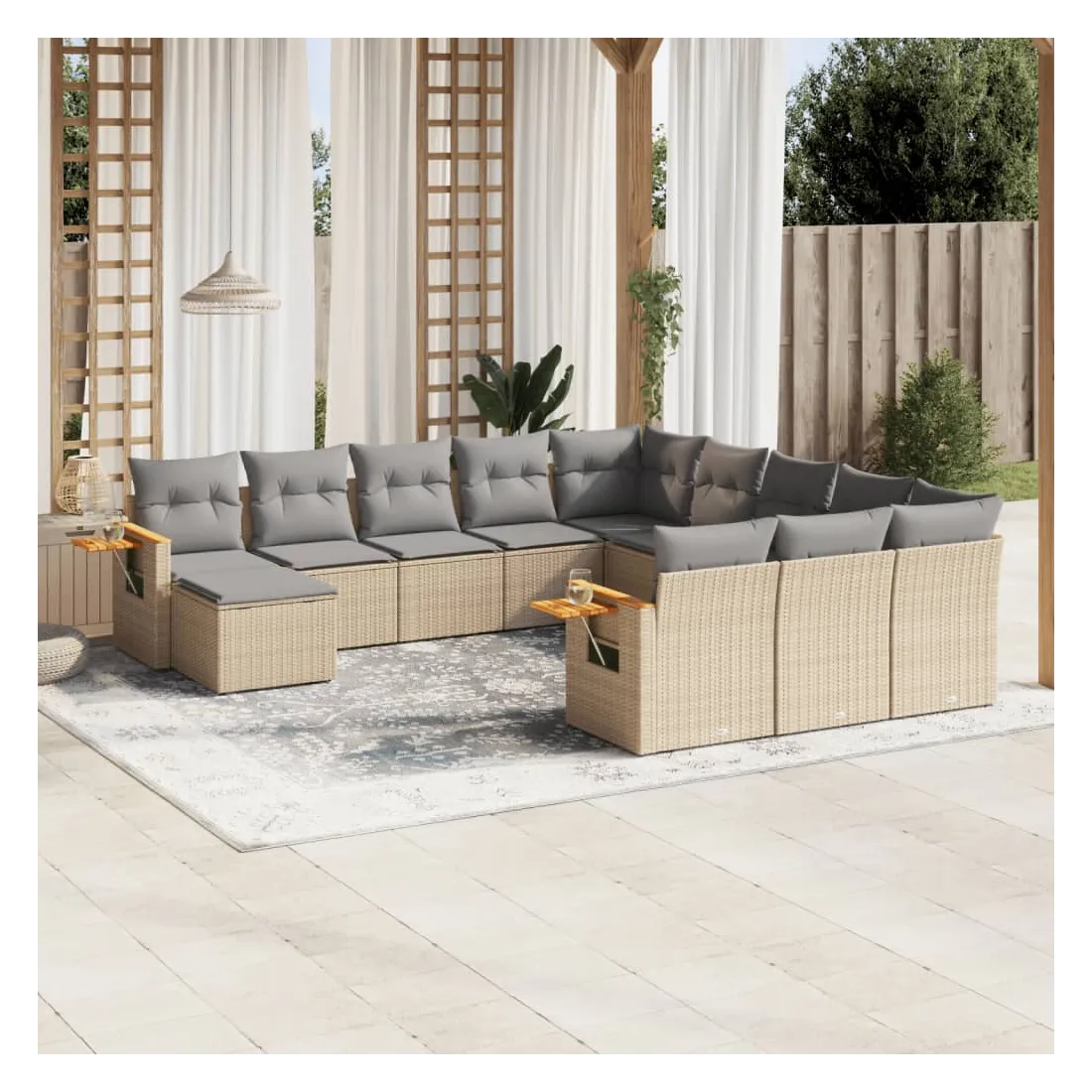 Salon de jardin 11 pcs avec coussins beige résine tressée