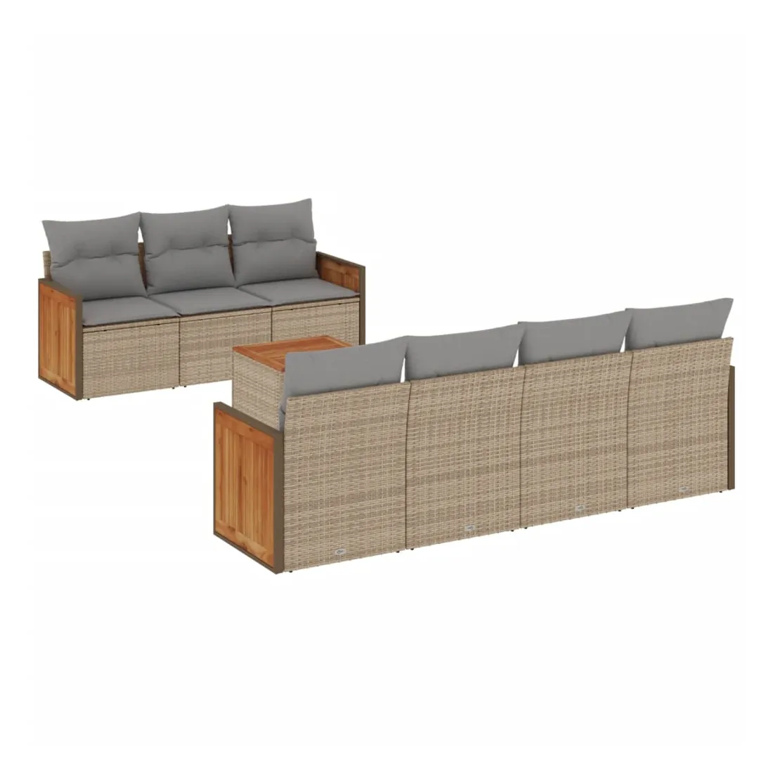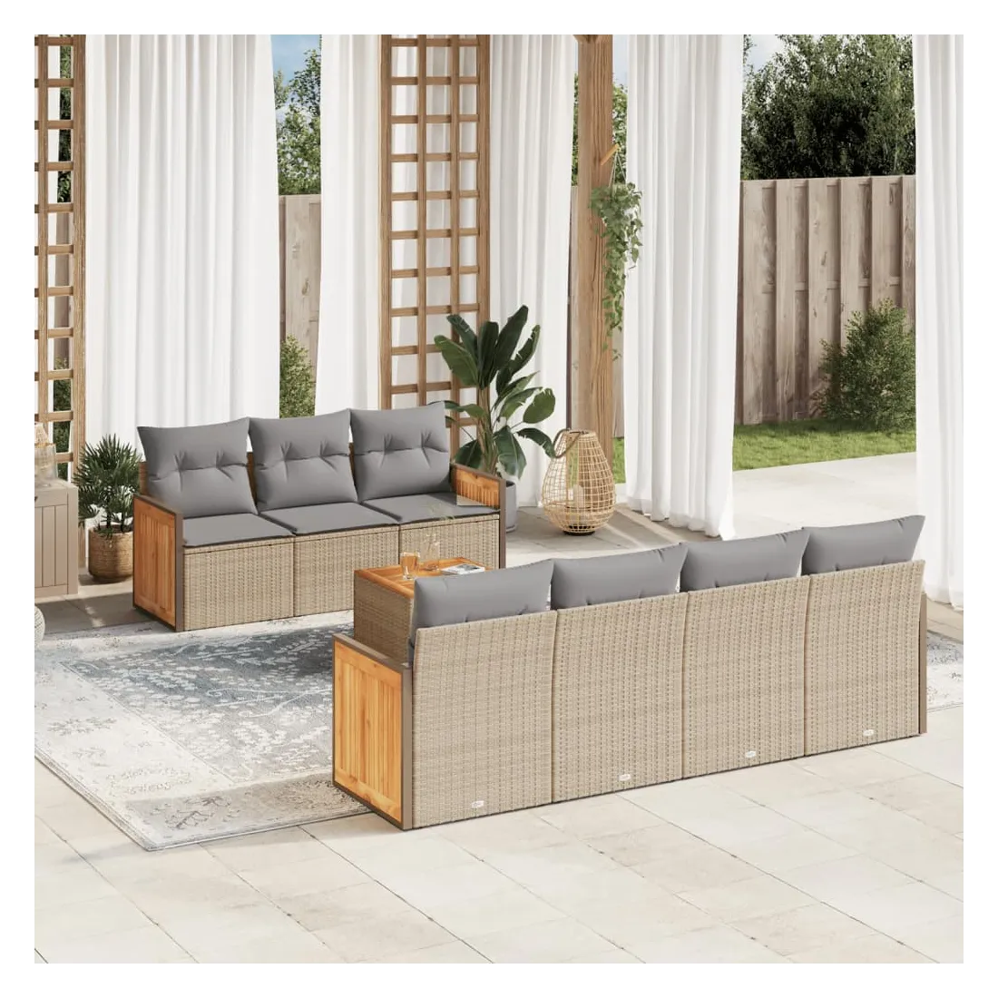 Cet ensemble de canapés de jardin est le complément parfait de votre arrière-cour, terrasse ou patio, offrant un espace confortable et accueillant pour discuter avec la famille et les amis ou simplement se détendre et profiter de l'extérieur. Matériau durable : la résine tressée, également connue sous le nom de poly rotin, est un matériau synthétique solide et nécessitant peu d'entretien qui ressemble au rotin naturel. Il est léger, facile à nettoyer et couramment utilisé pour les meubles d'extérieur en raison de sa durabilité et de ses propriétés de résistance aux intempéries.Fonction de rangement avec sac résistant à l'eau : le mobilier de jardin dispose d'un espace de rangement sous l'assise, complété par un sac résistant à l'eau pour ranger coussins, jouets et autres objets. Le sac intérieur peut être solidement fixé au mobilier d'extérieur grâce à des attaches auto-agrippantes pour plus de stabilité.Dessus stable et facile à nettoyer : cette table de jardin a un dessus en bois d'acacia robuste, durable et facile à nettoyer avec un chiffon humide.Housse amovible et lavable : ces coussins de siège sont dotés de housses amovibles pour un lavage et un entretien faciles.Conception modulaire : cet ensemble de meubles d'extérieur a une conception modulaire, ce qui le rend complètement flexible et facile à déplacer, afin que vous puissiez créer un agencement de meubles d'extérieur personnalisé. Bon à savoir :Pour que vos meubles d'extérieur restent beaux, nous vous recommandons de les protéger avec une housse imperméable.