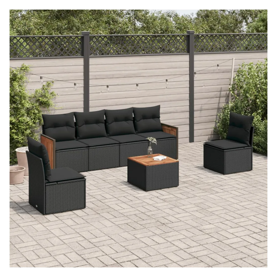 Cet ensemble de canapés de jardin est le complément parfait de votre arrière-cour, terrasse ou patio, offrant un espace confortable et accueillant pour discuter avec la famille et les amis ou simplement se détendre et profiter de l'extérieur. Matériau durable : la résine tressée, également connue sous le nom de poly rotin, est un matériau synthétique solide et nécessitant peu d'entretien qui ressemble au rotin naturel. Il est léger, facile à nettoyer et couramment utilisé pour les meubles d'extérieur en raison de sa durabilité et de ses propriétés de résistance aux intempéries.Fonction de rangement avec sac résistant à l'eau : le mobilier de jardin dispose d'un espace de rangement sous l'assise, complété par un sac résistant à l'eau pour ranger coussins, jouets et autres objets. Le sac intérieur peut être solidement fixé au mobilier d'extérieur grâce à des attaches auto-agrippantes pour plus de stabilité.Dessus stable et facile à nettoyer : cette table de jardin a un dessus en bois d'acacia robuste, durable et facile à nettoyer avec un chiffon humide.Housse amovible et lavable : ces coussins de siège sont dotés de housses amovibles pour un lavage et un entretien faciles.Conception modulaire : cet ensemble de meubles d'extérieur a une conception modulaire, ce qui le rend complètement flexible et facile à déplacer, afin que vous puissiez créer un agencement de meubles d'extérieur personnalisé. Bon à savoir :Pour que vos meubles d'extérieur restent beaux, nous vous recommandons de les protéger avec une housse imperméable.