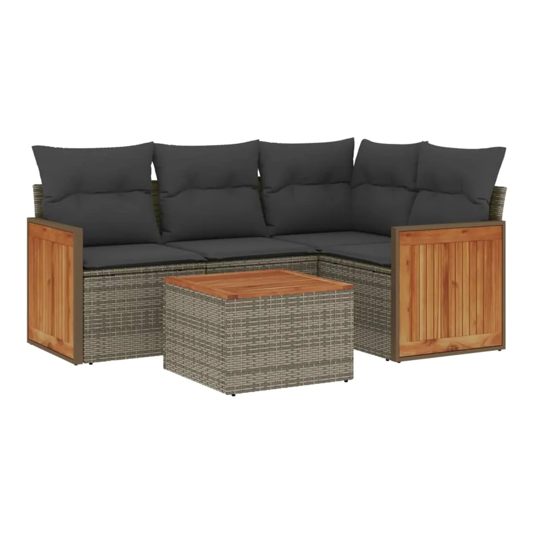 Cet ensemble de canapés de jardin est le complément parfait de votre arrière-cour, terrasse ou patio, offrant un espace confortable et accueillant pour discuter avec la famille et les amis ou simplement se détendre et profiter de l'extérieur. Matériau durable : la résine tressée, également connue sous le nom de poly rotin, est un matériau synthétique solide et nécessitant peu d'entretien qui ressemble au rotin naturel. Il est léger, facile à nettoyer et couramment utilisé pour les meubles d'extérieur en raison de sa durabilité et de ses propriétés de résistance aux intempéries.Fonction de rangement avec sac résistant à l'eau : le mobilier de jardin dispose d'un espace de rangement sous l'assise, complété par un sac résistant à l'eau pour ranger coussins, jouets et autres objets. Le sac intérieur peut être solidement fixé au mobilier d'extérieur grâce à des attaches auto-agrippantes pour plus de stabilité.Dessus stable et facile à nettoyer : cette table de jardin a un dessus en bois d'acacia robuste, durable et facile à nettoyer avec un chiffon humide.Housse amovible et lavable : ces coussins de siège sont dotés de housses amovibles pour un lavage et un entretien faciles.Conception modulaire : cet ensemble de meubles d'extérieur a une conception modulaire, ce qui le rend complètement flexible et facile à déplacer, afin que vous puissiez créer un agencement de meubles d'extérieur personnalisé. Bon à savoir :Pour que vos meubles d'extérieur restent beaux, nous vous recommandons de les protéger avec une housse imperméable.