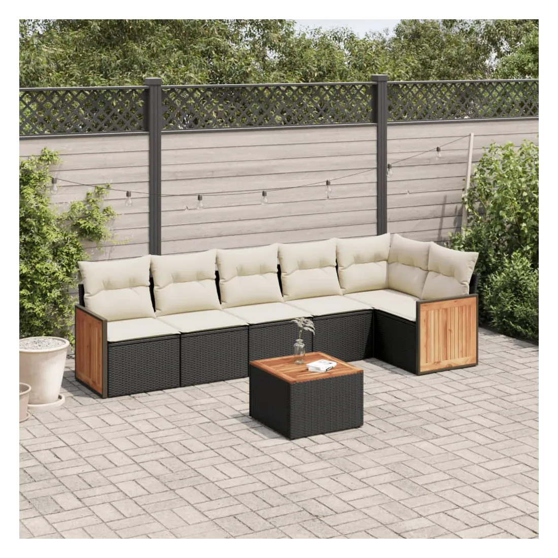 Salon de jardin 7 pcs avec coussins noir résine tressée