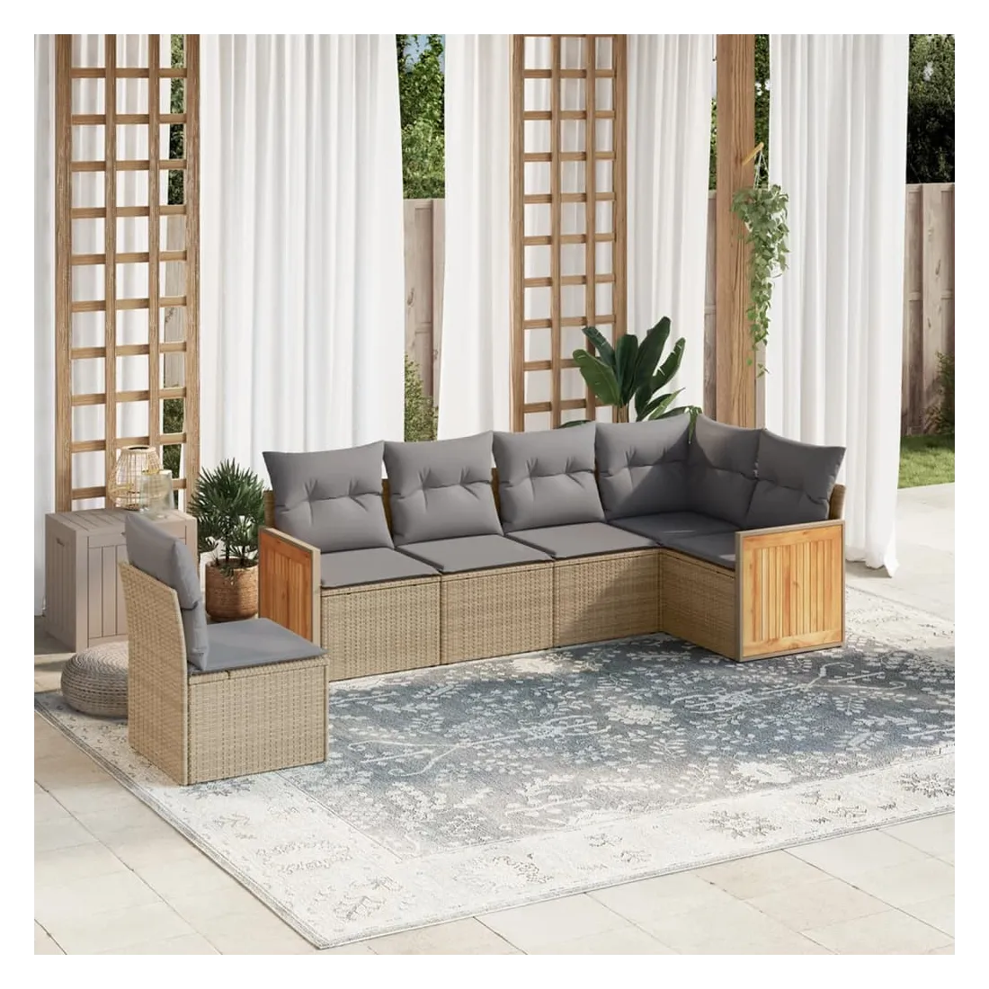 Salon de jardin avec coussins 6 pcs beige résine tressée