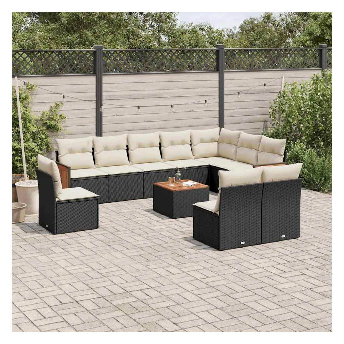 Cet ensemble de canapés de jardin est le complément parfait de votre arrière-cour, terrasse ou patio, offrant un espace confortable et accueillant pour discuter avec la famille et les amis ou simplement se détendre et profiter de l'extérieur. Matériau durable : la résine tressée, également connue sous le nom de poly rotin, est un matériau synthétique solide et nécessitant peu d'entretien qui ressemble au rotin naturel. Il est léger, facile à nettoyer et couramment utilisé pour les meubles d'extérieur en raison de sa durabilité et de ses propriétés de résistance aux intempéries.Fonction de rangement avec sac résistant à l'eau : le mobilier de jardin dispose d'un espace de rangement sous l'assise, complété par un sac résistant à l'eau pour ranger coussins, jouets et autres objets. Le sac intérieur peut être solidement fixé au mobilier d'extérieur grâce à des attaches auto-agrippantes pour plus de stabilité.Dessus stable et facile à nettoyer : cette table de jardin a un dessus en bois d'acacia robuste, durable et facile à nettoyer avec un chiffon humide.Housse amovible et lavable : ces coussins de siège sont dotés de housses amovibles pour un lavage et un entretien faciles.Conception modulaire : cet ensemble de meubles d'extérieur a une conception modulaire, ce qui le rend complètement flexible et facile à déplacer, afin que vous puissiez créer un agencement de meubles d'extérieur personnalisé. Bon à savoir :Pour que vos meubles d'extérieur restent beaux, nous vous recommandons de les protéger avec une housse imperméable.