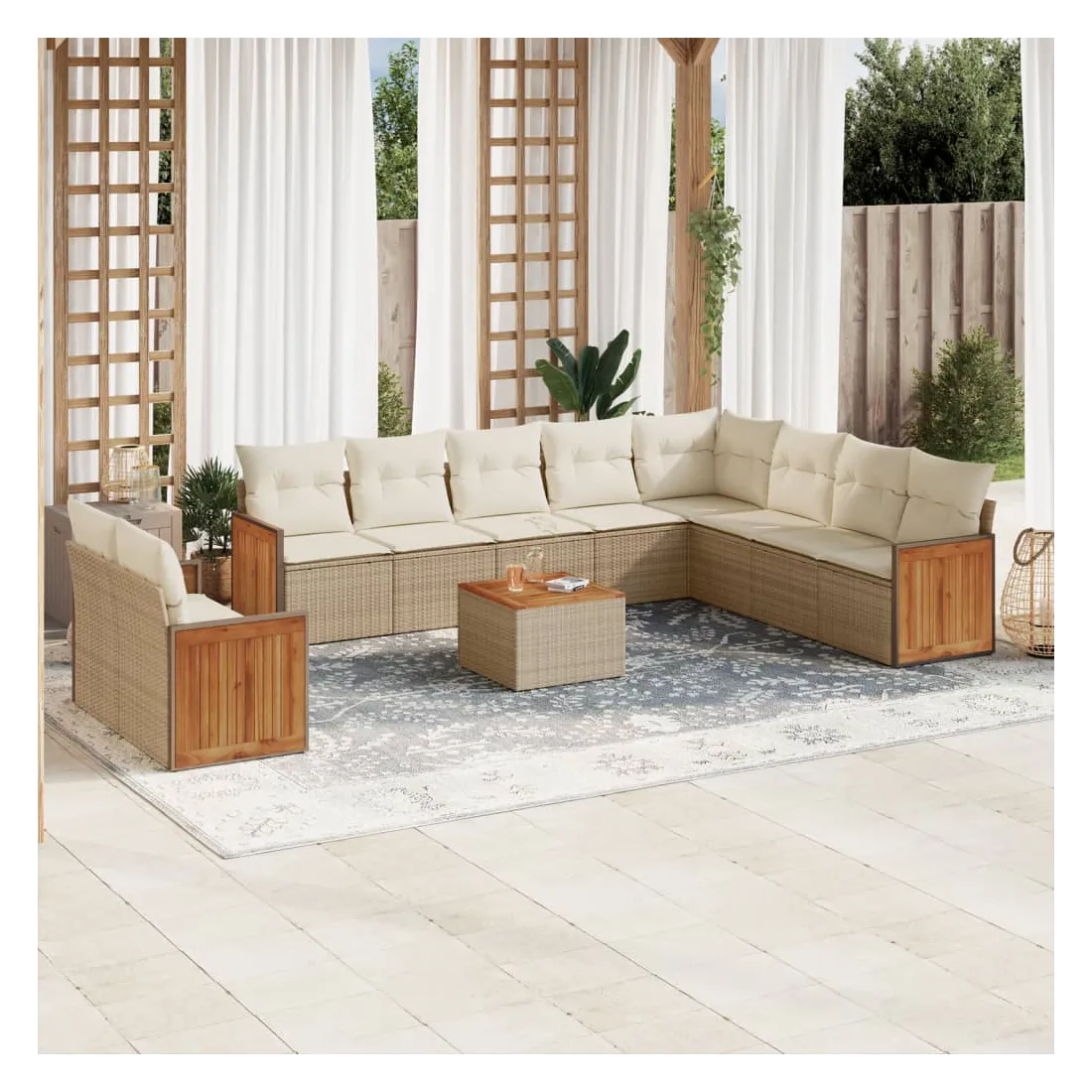 Cet ensemble de canapés de jardin est le complément parfait de votre arrière-cour, terrasse ou patio, offrant un espace confortable et accueillant pour discuter avec la famille et les amis ou simplement se détendre et profiter de l'extérieur. Matériau durable : la résine tressée, également connue sous le nom de poly rotin, est un matériau synthétique solide et nécessitant peu d'entretien qui ressemble au rotin naturel. Il est léger, facile à nettoyer et couramment utilisé pour les meubles d'extérieur en raison de sa durabilité et de ses propriétés de résistance aux intempéries.Fonction de rangement avec sac résistant à l'eau : le mobilier de jardin dispose d'un espace de rangement sous l'assise, complété par un sac résistant à l'eau pour ranger coussins, jouets et autres objets. Le sac intérieur peut être solidement fixé au mobilier d'extérieur grâce à des attaches auto-agrippantes pour plus de stabilité.Dessus stable et facile à nettoyer : cette table de jardin a un dessus en bois d'acacia robuste, durable et facile à nettoyer avec un chiffon humide.Housse amovible et lavable : ces coussins de siège sont dotés de housses amovibles pour un lavage et un entretien faciles.Conception modulaire : cet ensemble de meubles d'extérieur a une conception modulaire, ce qui le rend complètement flexible et facile à déplacer, afin que vous puissiez créer un agencement de meubles d'extérieur personnalisé. Bon à savoir :Pour que vos meubles d'extérieur restent beaux, nous vous recommandons de les protéger avec une housse imperméable.