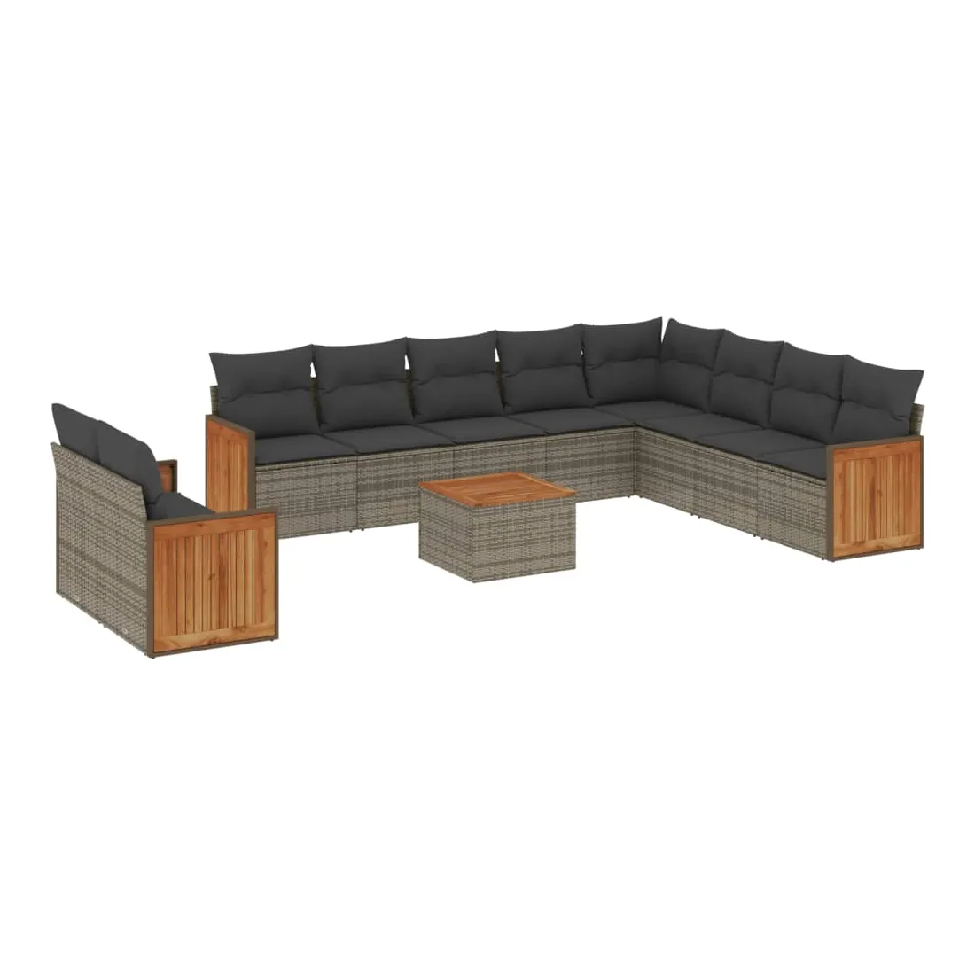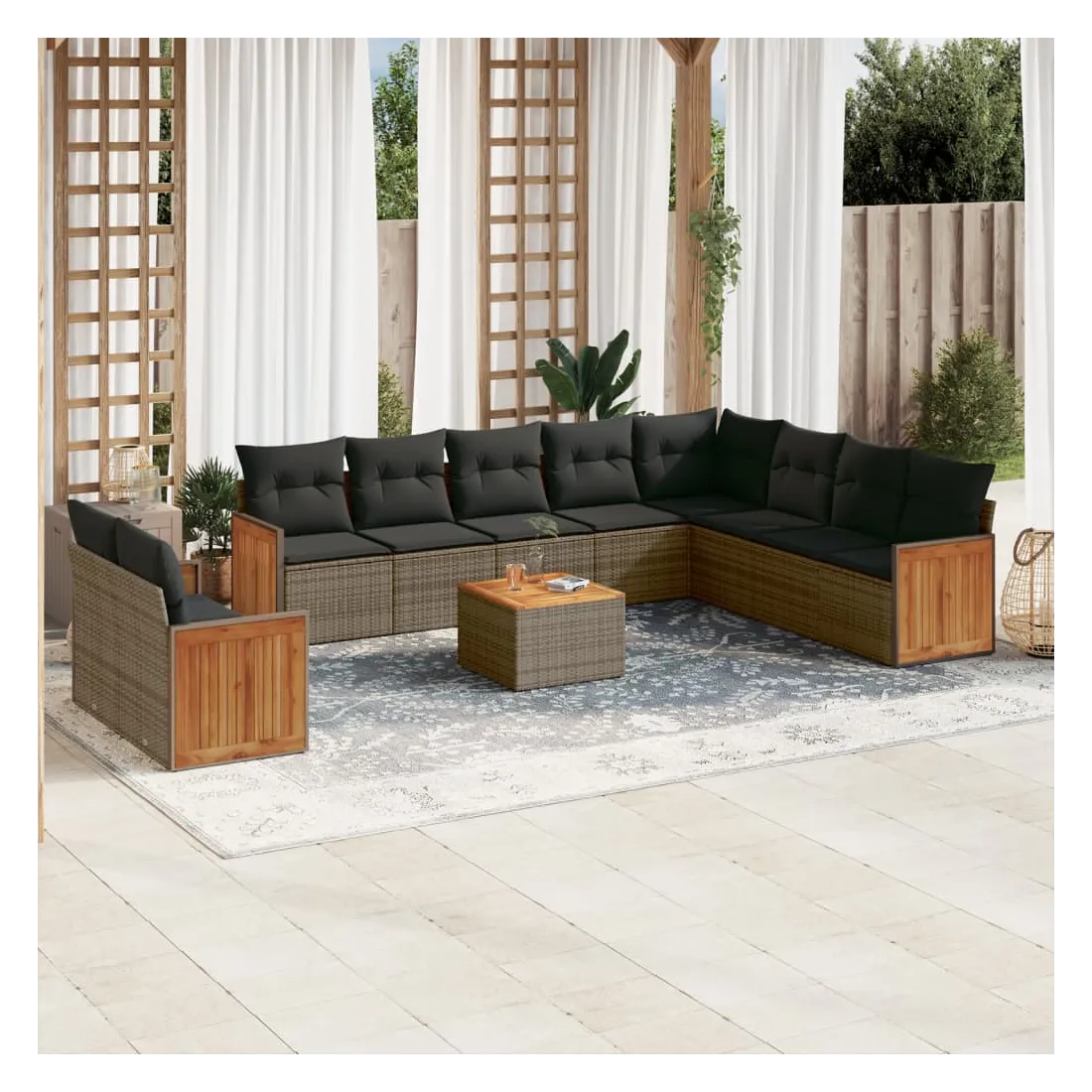 Cet ensemble de canapés de jardin est le complément parfait de votre arrière-cour, terrasse ou patio, offrant un espace confortable et accueillant pour discuter avec la famille et les amis ou simplement se détendre et profiter de l'extérieur. Matériau durable : la résine tressée, également connue sous le nom de poly rotin, est un matériau synthétique solide et nécessitant peu d'entretien qui ressemble au rotin naturel. Il est léger, facile à nettoyer et couramment utilisé pour les meubles d'extérieur en raison de sa durabilité et de ses propriétés de résistance aux intempéries.Fonction de rangement avec sac résistant à l'eau : le mobilier de jardin dispose d'un espace de rangement sous l'assise, complété par un sac résistant à l'eau pour ranger coussins, jouets et autres objets. Le sac intérieur peut être solidement fixé au mobilier d'extérieur grâce à des attaches auto-agrippantes pour plus de stabilité.Dessus stable et facile à nettoyer : cette table de jardin a un dessus en bois d'acacia robuste, durable et facile à nettoyer avec un chiffon humide.Housse amovible et lavable : ces coussins de siège sont dotés de housses amovibles pour un lavage et un entretien faciles.Conception modulaire : cet ensemble de meubles d'extérieur a une conception modulaire, ce qui le rend complètement flexible et facile à déplacer, afin que vous puissiez créer un agencement de meubles d'extérieur personnalisé. Bon à savoir :Pour que vos meubles d'extérieur restent beaux, nous vous recommandons de les protéger avec une housse imperméable.