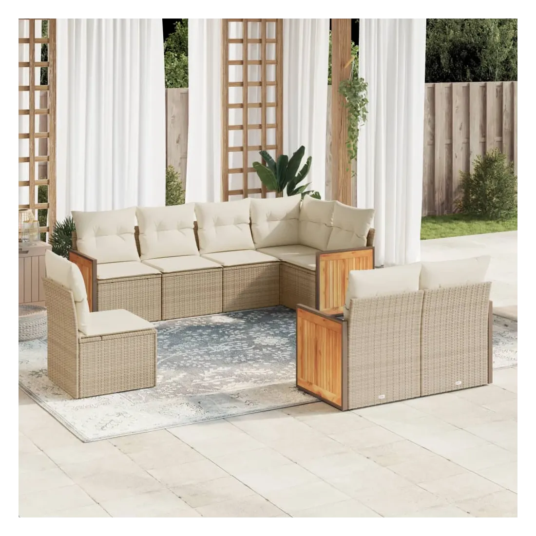 Cet ensemble de canapés de jardin est le complément parfait de votre arrière-cour, terrasse ou patio, offrant un espace confortable et accueillant pour discuter avec la famille et les amis ou simplement se détendre et profiter de l'extérieur. Matériau durable : la résine tressée, également connue sous le nom de poly rotin, est un matériau synthétique solide et nécessitant peu d'entretien qui ressemble au rotin naturel. Il est léger, facile à nettoyer et couramment utilisé pour les meubles d'extérieur en raison de sa durabilité et de ses propriétés de résistance aux intempéries.Fonction de rangement avec sac résistant à l'eau : le mobilier de jardin dispose d'un espace de rangement sous l'assise, complété par un sac résistant à l'eau pour ranger coussins, jouets et autres objets. Le sac intérieur peut être solidement fixé au mobilier d'extérieur grâce à des attaches auto-agrippantes pour plus de stabilité.Housse amovible et lavable : ces coussins de siège sont dotés de housses amovibles pour un lavage et un entretien faciles.Conception modulaire : cet ensemble de meubles d'extérieur a une conception modulaire, ce qui le rend complètement flexible et facile à déplacer, afin que vous puissiez créer un agencement de meubles d'extérieur personnalisé. Bon à savoir :Pour que vos meubles d'extérieur restent beaux, nous vous recommandons de les protéger avec une housse imperméable.