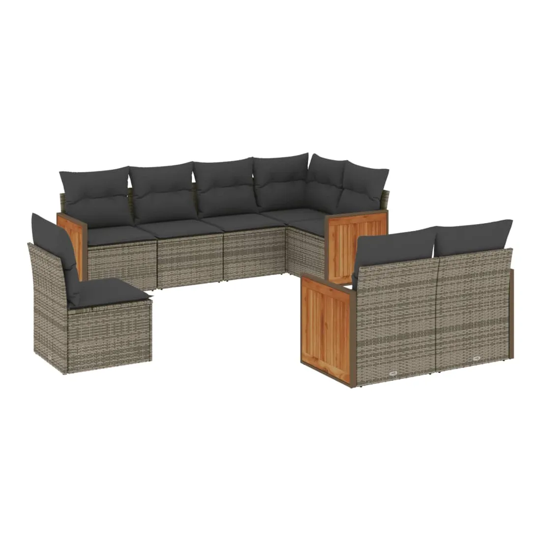 Salon de jardin 8 pcs avec coussins gris résine tressée