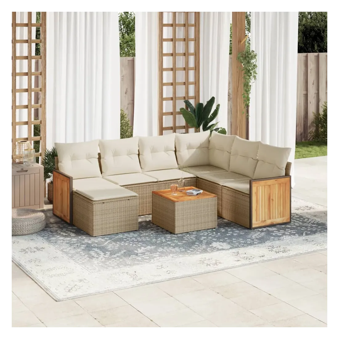 Salon de jardin avec coussins 8 pcs beige résine tressée