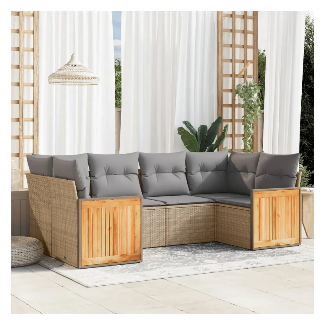 - Matériau : résine tressée, acier enduit de poudre, bois d'acacia massif avec finition à l'huile