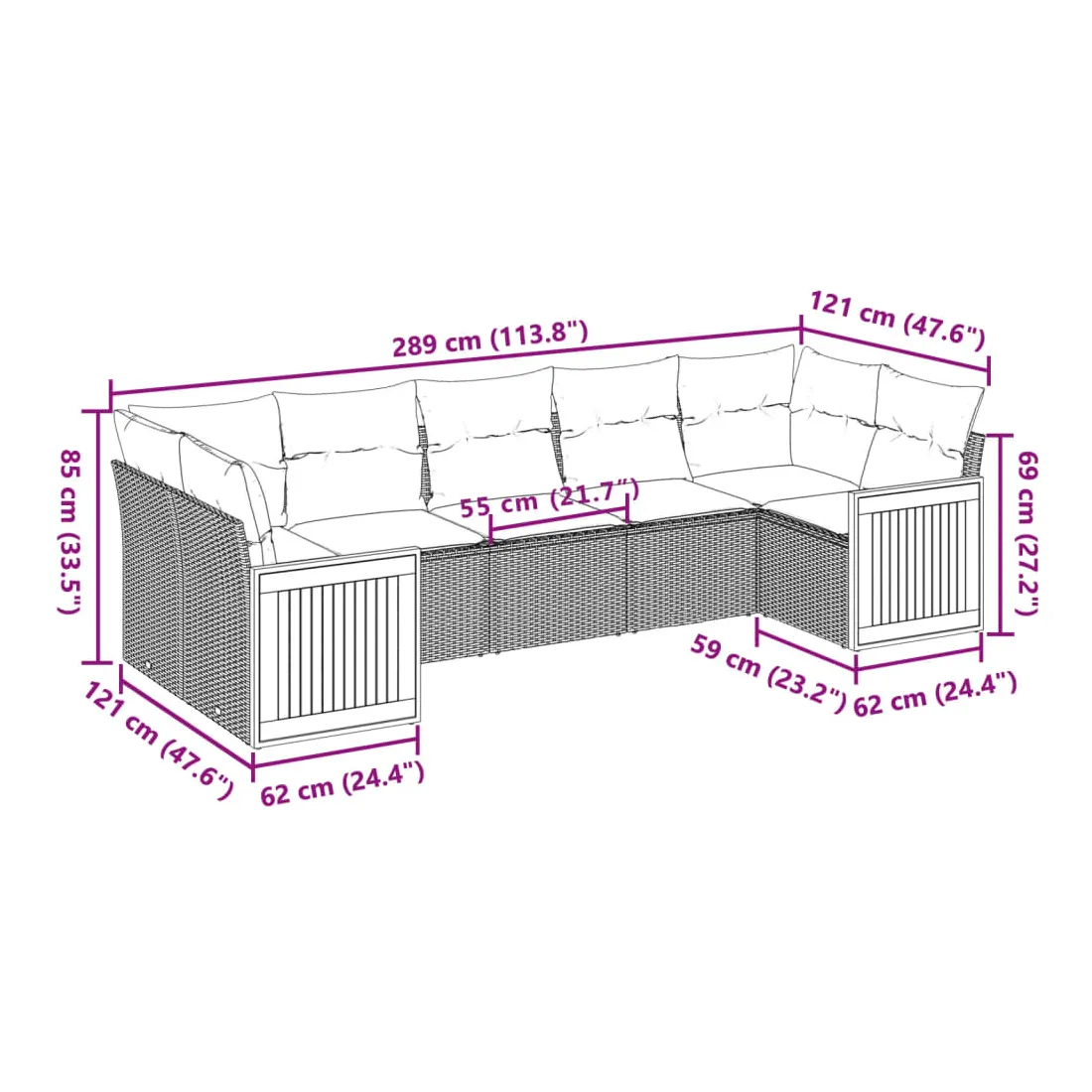 - 7 x coussin de siège avec housse amovible et lavable
