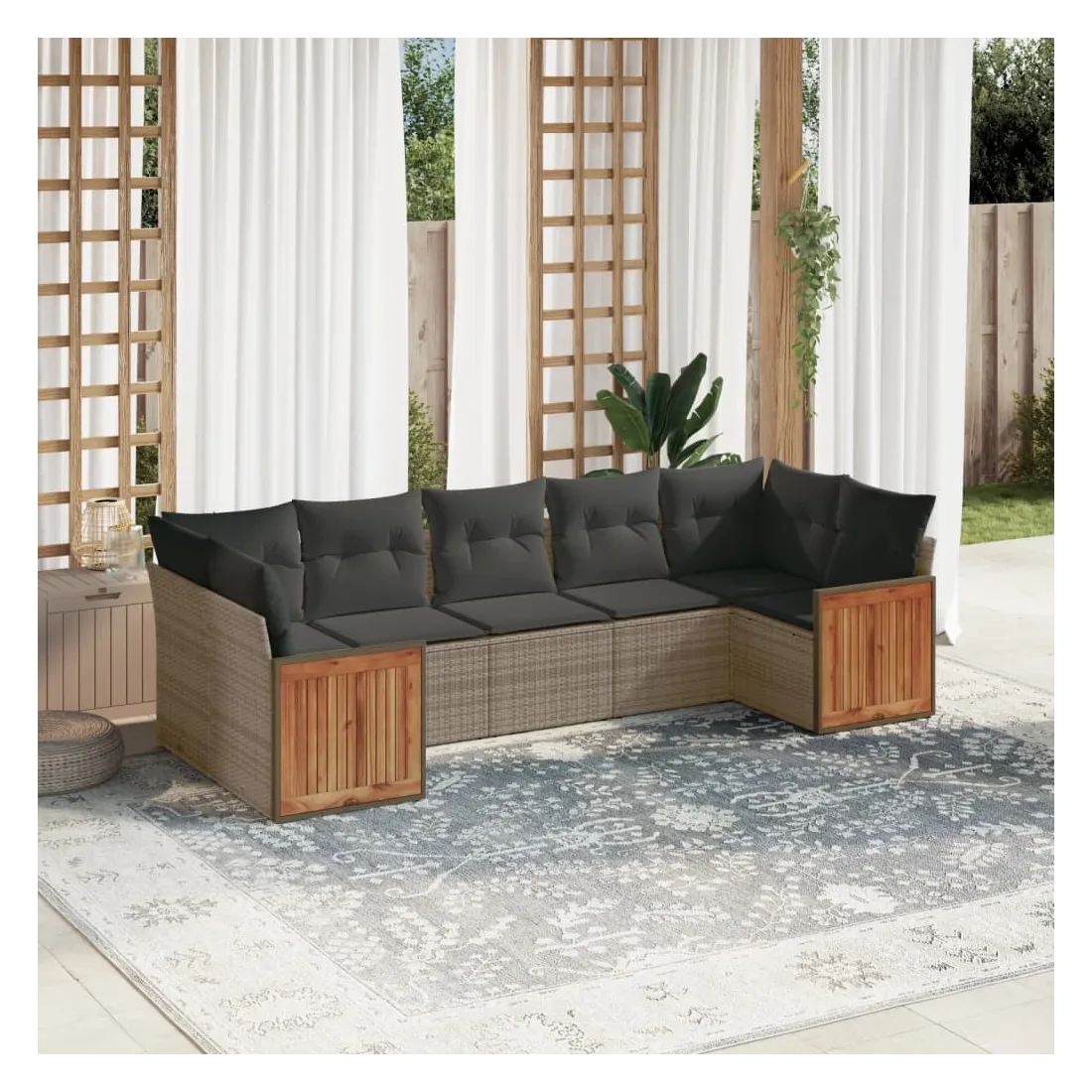 Cet ensemble de canapés de jardin est le complément parfait de votre arrière-cour, terrasse ou patio, offrant un espace confortable et accueillant pour discuter avec la famille et les amis ou simplement se détendre et profiter de l'extérieur. Matériau durable : la résine tressée, également connue sous le nom de poly rotin, est un matériau synthétique solide et nécessitant peu d'entretien qui ressemble au rotin naturel. Il est léger, facile à nettoyer et couramment utilisé pour les meubles d'extérieur en raison de sa durabilité et de ses propriétés de résistance aux intempéries.Fonction de rangement avec sac résistant à l'eau : le mobilier de jardin dispose d'un espace de rangement sous l'assise, complété par un sac résistant à l'eau pour ranger coussins, jouets et autres objets. Le sac intérieur peut être solidement fixé au mobilier d'extérieur grâce à des attaches auto-agrippantes pour plus de stabilité.Housse amovible et lavable : ces coussins de siège sont dotés de housses amovibles pour un lavage et un entretien faciles.Conception modulaire : cet ensemble de meubles d'extérieur a une conception modulaire, ce qui le rend complètement flexible et facile à déplacer, afin que vous puissiez créer un agencement de meubles d'extérieur personnalisé. Bon à savoir :Pour que vos meubles d'extérieur restent beaux, nous vous recommandons de les protéger avec une housse imperméable.