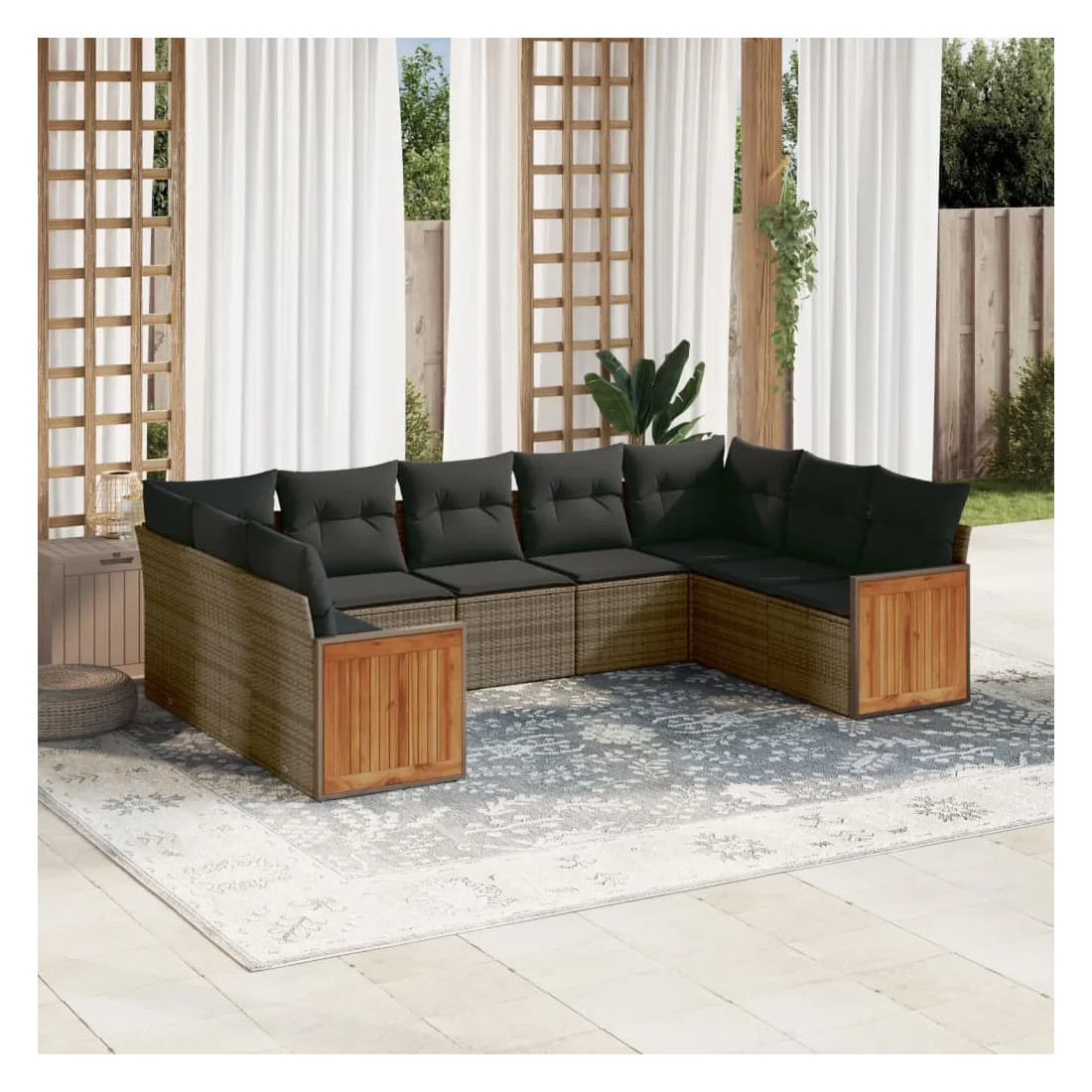 Cet ensemble de canapés de jardin est le complément parfait de votre arrière-cour, terrasse ou patio, offrant un espace confortable et accueillant pour discuter avec la famille et les amis ou simplement se détendre et profiter de l'extérieur. Matériau durable : la résine tressée, également connue sous le nom de poly rotin, est un matériau synthétique solide et nécessitant peu d'entretien qui ressemble au rotin naturel. Il est léger, facile à nettoyer et couramment utilisé pour les meubles d'extérieur en raison de sa durabilité et de ses propriétés de résistance aux intempéries.Fonction de rangement avec sac résistant à l'eau : le mobilier de jardin dispose d'un espace de rangement sous l'assise, complété par un sac résistant à l'eau pour ranger coussins, jouets et autres objets. Le sac intérieur peut être solidement fixé au mobilier d'extérieur grâce à des attaches auto-agrippantes pour plus de stabilité.Housse amovible et lavable : ces coussins de siège sont dotés de housses amovibles pour un lavage et un entretien faciles.Conception modulaire : cet ensemble de meubles d'extérieur a une conception modulaire, ce qui le rend complètement flexible et facile à déplacer, afin que vous puissiez créer un agencement de meubles d'extérieur personnalisé. Bon à savoir :Pour que vos meubles d'extérieur restent beaux, nous vous recommandons de les protéger avec une housse imperméable.