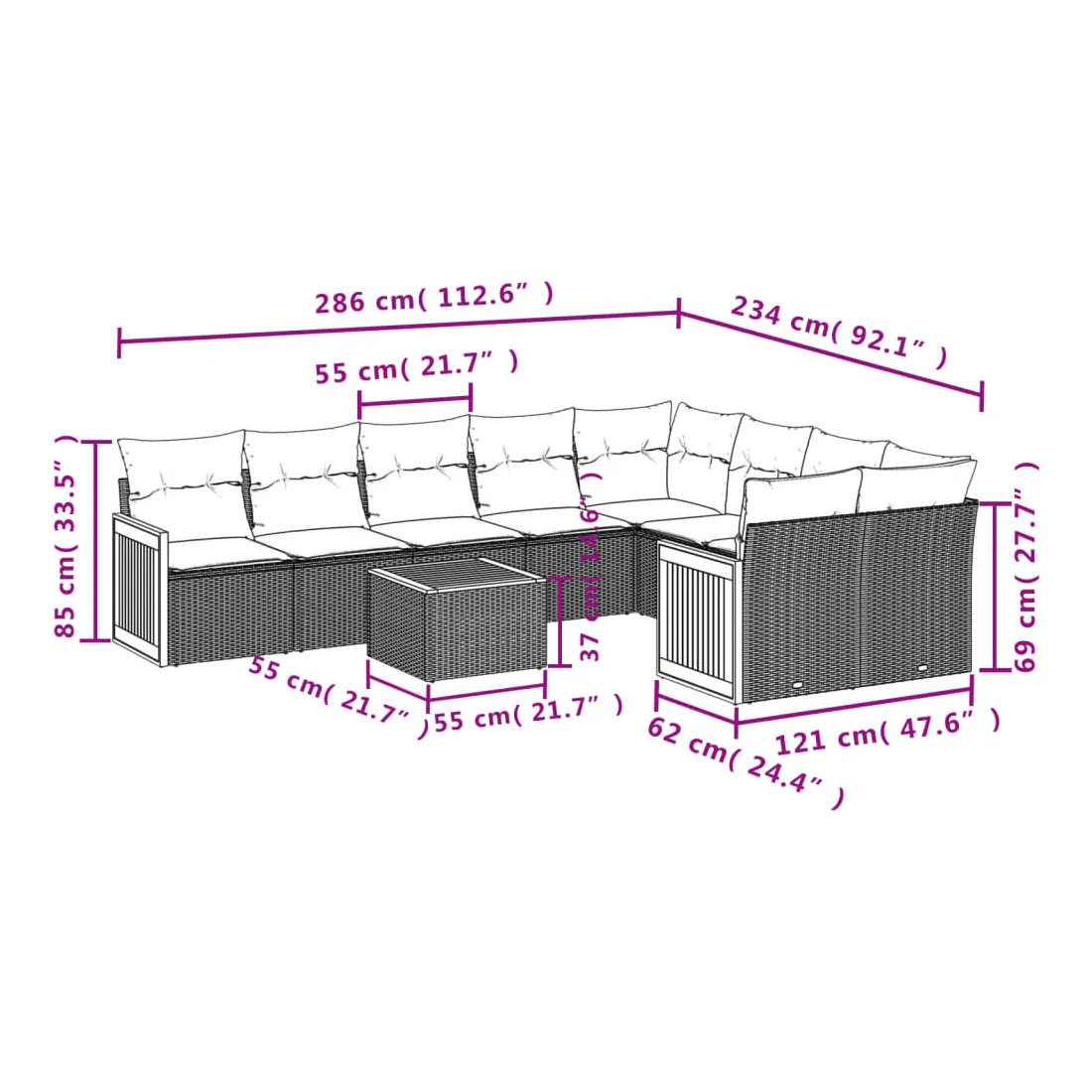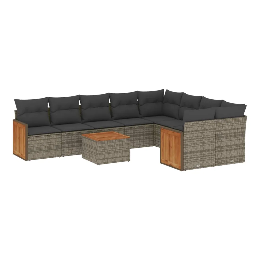 Cet ensemble de canapés de jardin est le complément parfait de votre arrière-cour, terrasse ou patio, offrant un espace confortable et accueillant pour discuter avec la famille et les amis ou simplement se détendre et profiter de l'extérieur. Matériau durable : la résine tressée, également connue sous le nom de poly rotin, est un matériau synthétique solide et nécessitant peu d'entretien qui ressemble au rotin naturel. Il est léger, facile à nettoyer et couramment utilisé pour les meubles d'extérieur en raison de sa durabilité et de ses propriétés de résistance aux intempéries.Fonction de rangement avec sac résistant à l'eau : le mobilier de jardin dispose d'un espace de rangement sous l'assise, complété par un sac résistant à l'eau pour ranger coussins, jouets et autres objets. Le sac intérieur peut être solidement fixé au mobilier d'extérieur grâce à des attaches auto-agrippantes pour plus de stabilité.Dessus stable et facile à nettoyer : cette table de jardin a un dessus en bois d'acacia robuste, durable et facile à nettoyer avec un chiffon humide.Housse amovible et lavable : ces coussins de siège sont dotés de housses amovibles pour un lavage et un entretien faciles.Conception modulaire : cet ensemble de meubles d'extérieur a une conception modulaire, ce qui le rend complètement flexible et facile à déplacer, afin que vous puissiez créer un agencement de meubles d'extérieur personnalisé. Bon à savoir :Pour que vos meubles d'extérieur restent beaux, nous vous recommandons de les protéger avec une housse imperméable.
