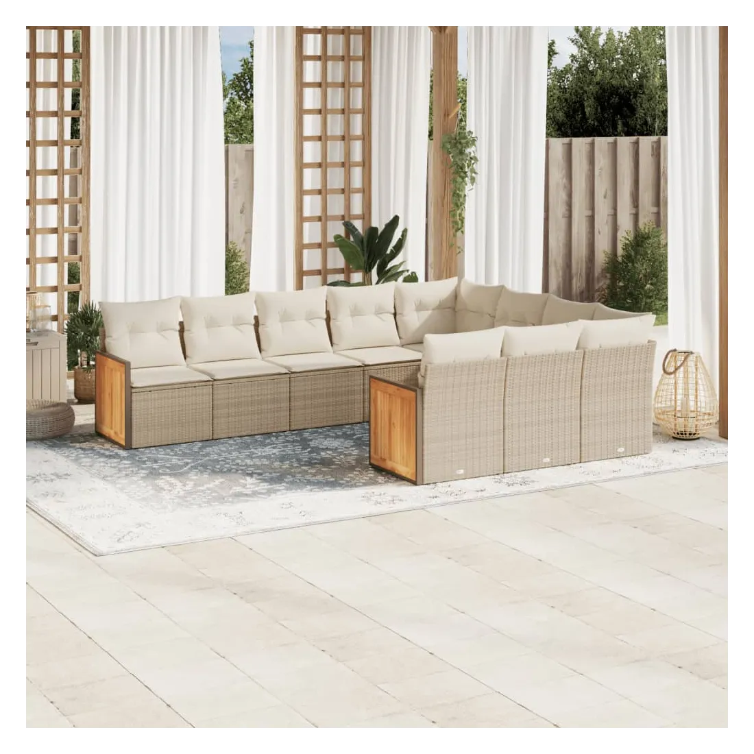 Salon de jardin avec coussins 10 pcs beige résine tressée