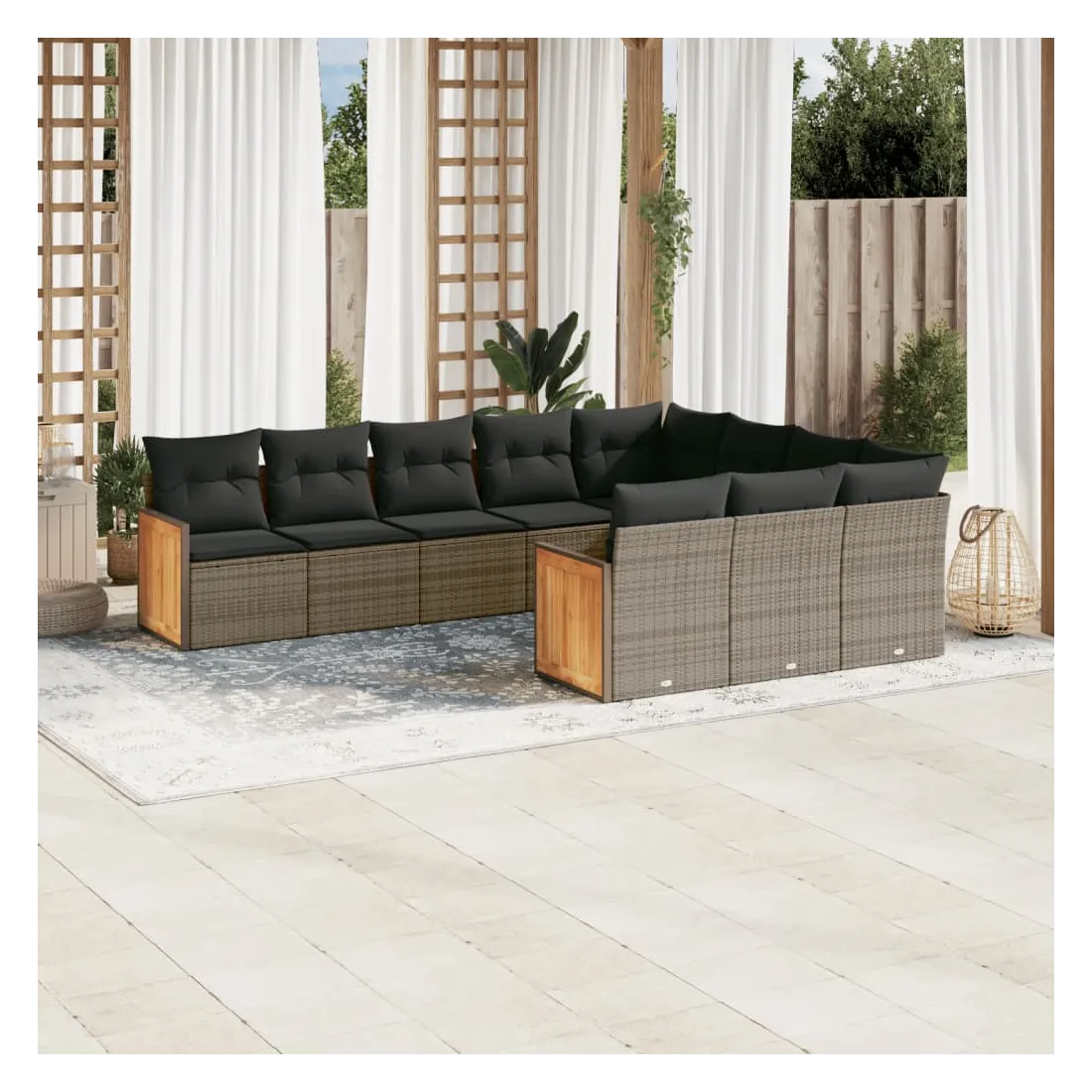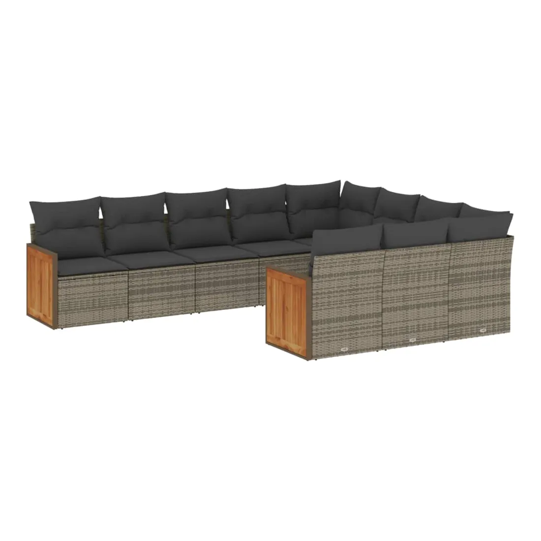 Salon de jardin avec coussins 10 pcs gris résine tressée