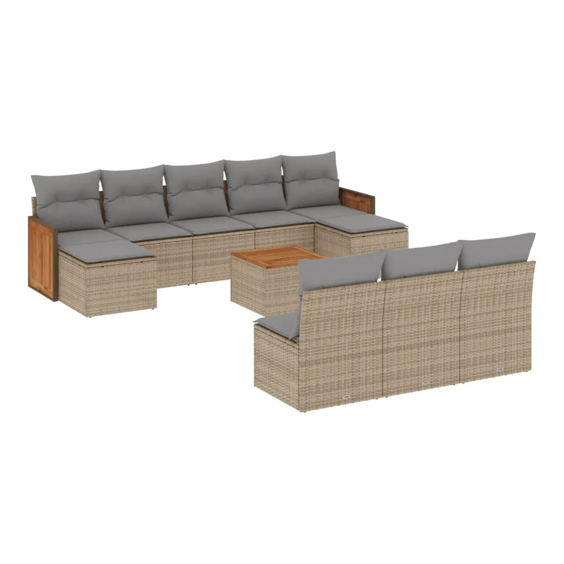 Cet ensemble de canapés de jardin est le complément parfait de votre arrière-cour, terrasse ou patio, offrant un espace confortable et accueillant pour discuter avec la famille et les amis ou simplement se détendre et profiter de l'extérieur. Matériau durable : la résine tressée, également connue sous le nom de poly rotin, est un matériau synthétique solide et nécessitant peu d'entretien qui ressemble au rotin naturel. Il est léger, facile à nettoyer et couramment utilisé pour les meubles d'extérieur en raison de sa durabilité et de ses propriétés de résistance aux intempéries.Fonction de rangement avec sac résistant à l'eau : le mobilier de jardin dispose d'un espace de rangement sous l'assise, complété par un sac résistant à l'eau pour ranger coussins, jouets et autres objets. Le sac intérieur peut être solidement fixé au mobilier d'extérieur grâce à des attaches auto-agrippantes pour plus de stabilité.Dessus stable et facile à nettoyer : cette table de jardin a un dessus en bois d'acacia robuste, durable et facile à nettoyer avec un chiffon humide.Housse amovible et lavable : ces coussins de siège sont dotés de housses amovibles pour un lavage et un entretien faciles.Conception modulaire : cet ensemble de meubles d'extérieur a une conception modulaire, ce qui le rend complètement flexible et facile à déplacer, afin que vous puissiez créer un agencement de meubles d'extérieur personnalisé. Bon à savoir :Pour que vos meubles d'extérieur restent beaux, nous vous recommandons de les protéger avec une housse imperméable.