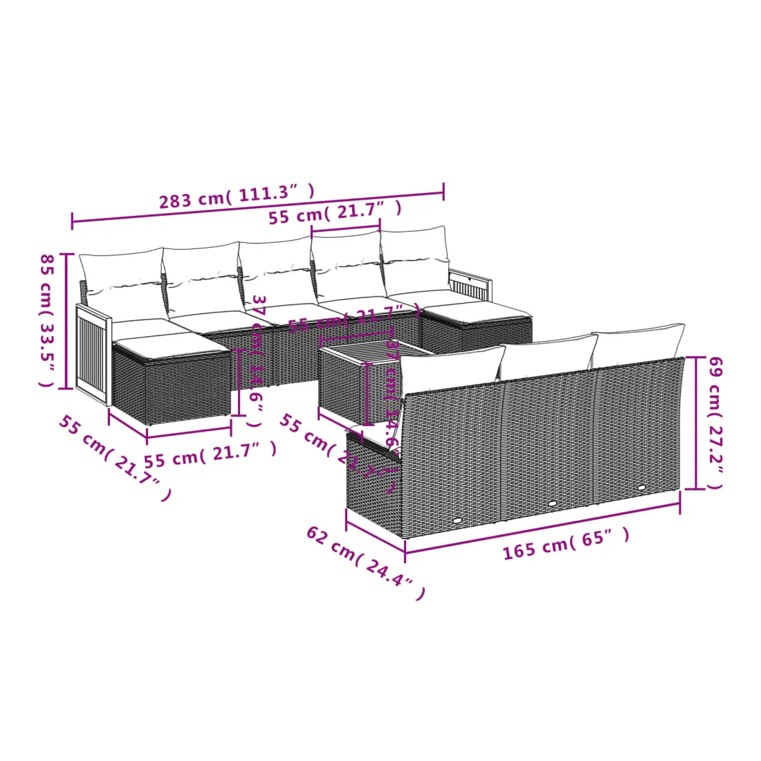 - Dimensions du coussin de dossier : 55 x 45 x 13 cm (L x l x é)